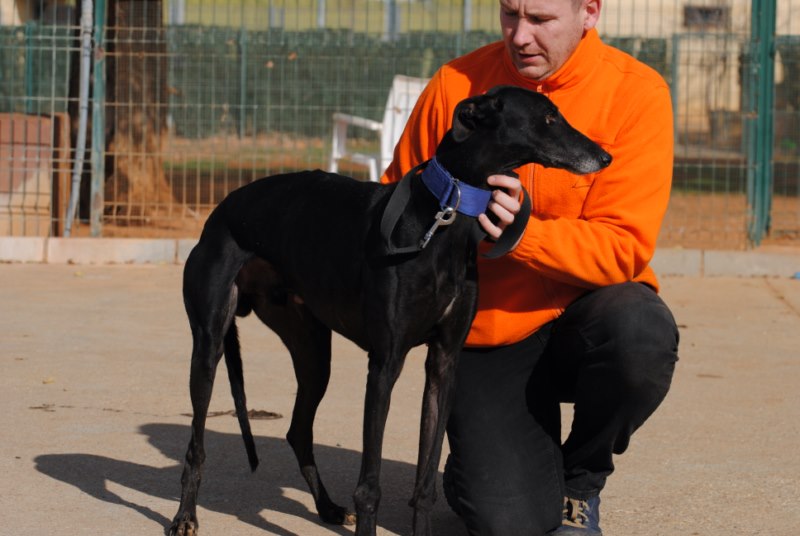 Au refuge il y a de très beaux galgos, des petites femelles sociables et gentilles, Afro lui est un de ceux que l ‘on ne regarde plus et qui a été oublié comme un vieux bibelot .Oui c est un mâle , en plus il est noir …Il est très gentil et il vous accorde sa confiance tout de suite et réclame des caresses, ce galgo vous suivra jusqu’au bout du monde .Donnez lui la chance de vivre dans un foyer aimant et de lui faire découvrir les balades, les jeux dans le jardin ,c est tout ce dont il a besoin .N’hésitez pas à remplir notre formulaire.