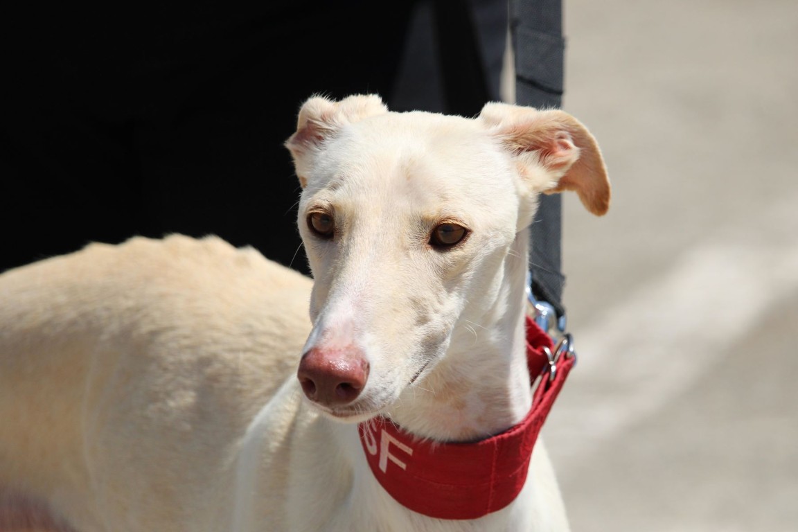 Laissez-vous toucher par la douceur d’Ahsoka, une sublime galga blanche au regard tendre et apaisant 🤍