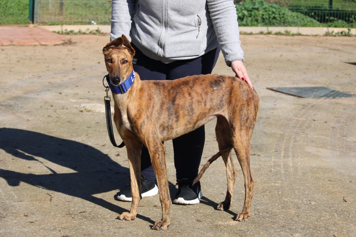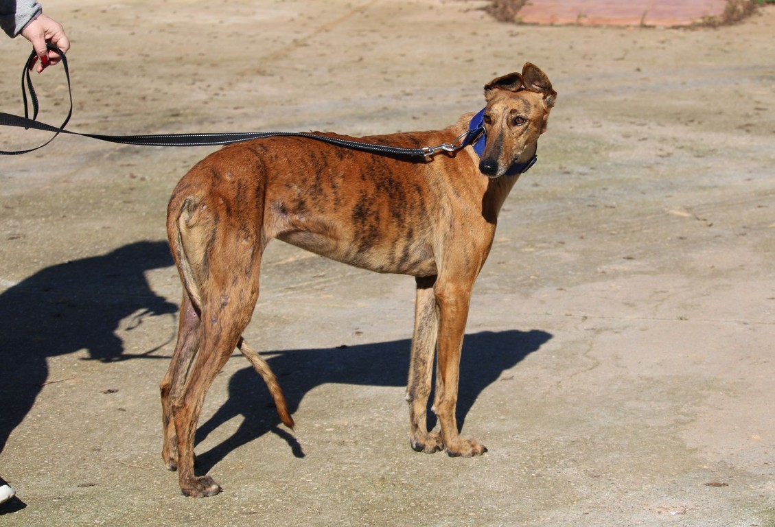 Jeune galga bringée, née le 07/01/2024, avec un look unique : des oreilles en mode casquette 🧢😎 (oui oui, c’est mon style) et une vraie pro des mimiques pour me faire comprendre… inutile de parler, je joue la comédie 🎭🐾
