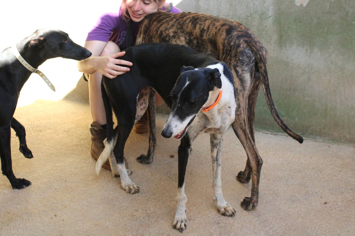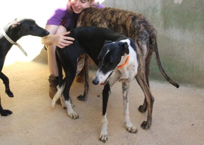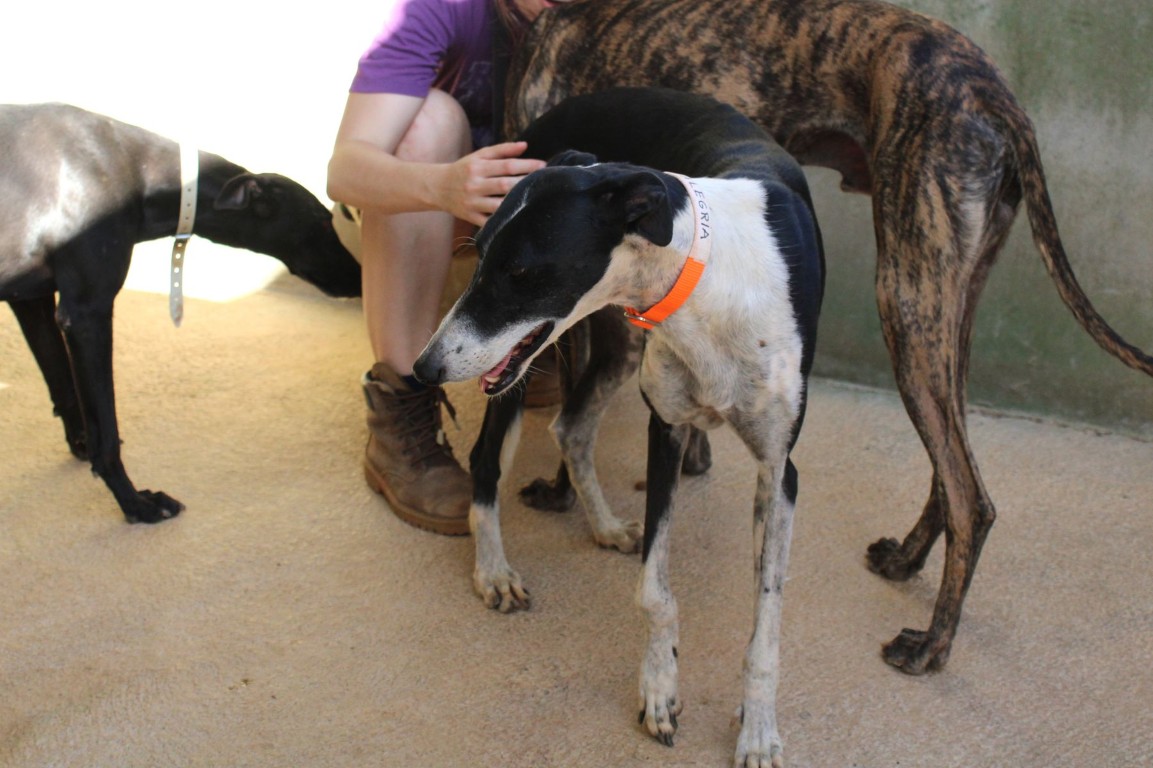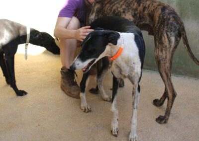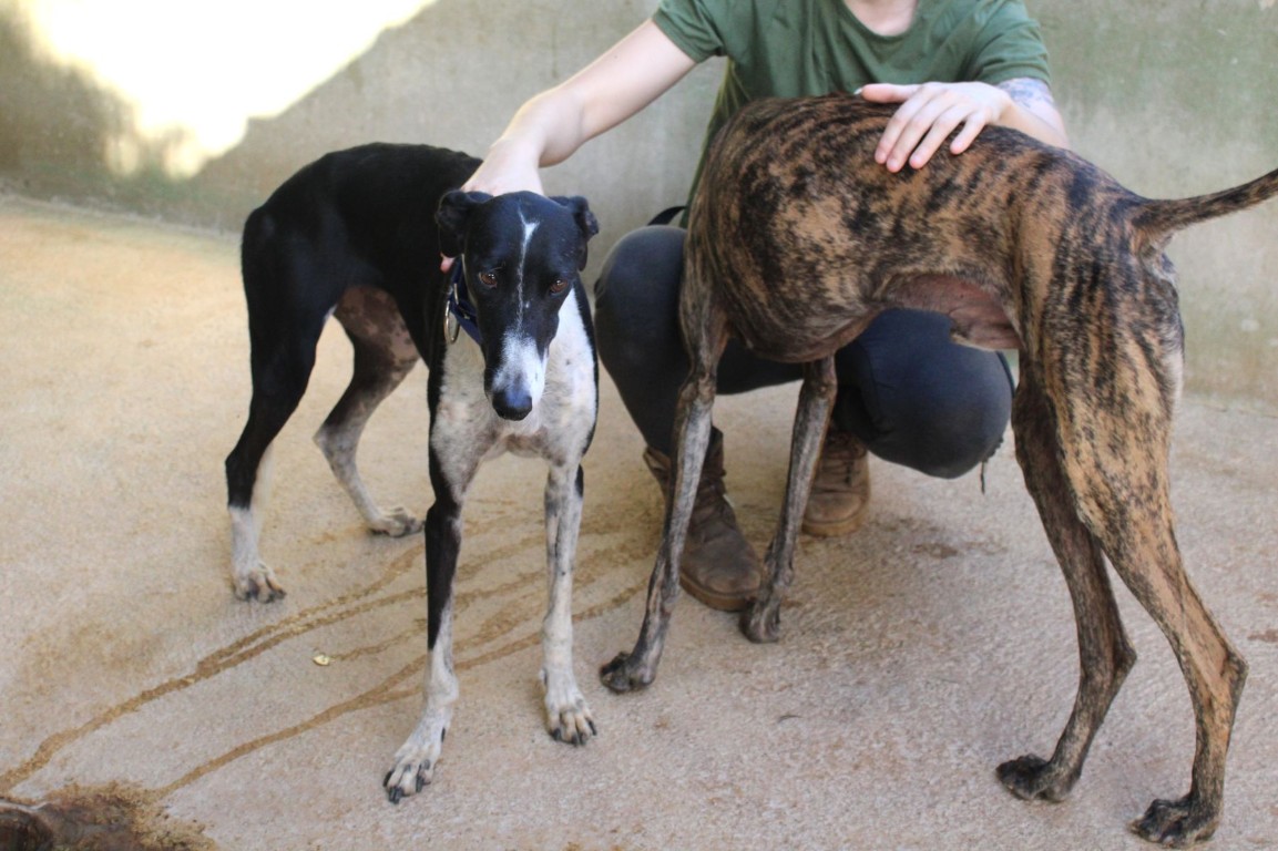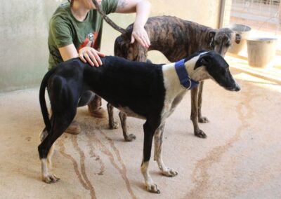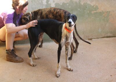 Alegría est une galga très douce, calme et sociable 💕 Elle s’entend à merveille avec ses compagnons de box, et les autres chiens seront essentiels à son équilibre et son épanouissement 🐶