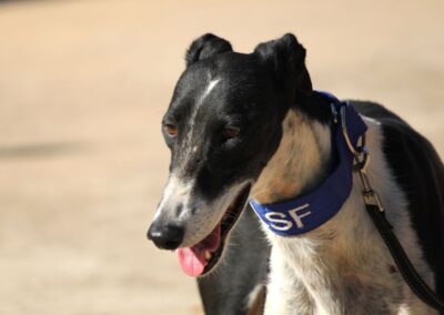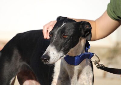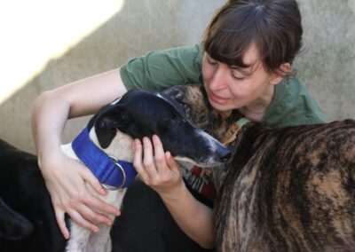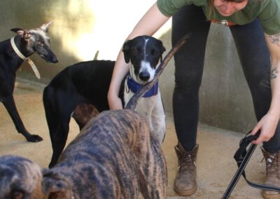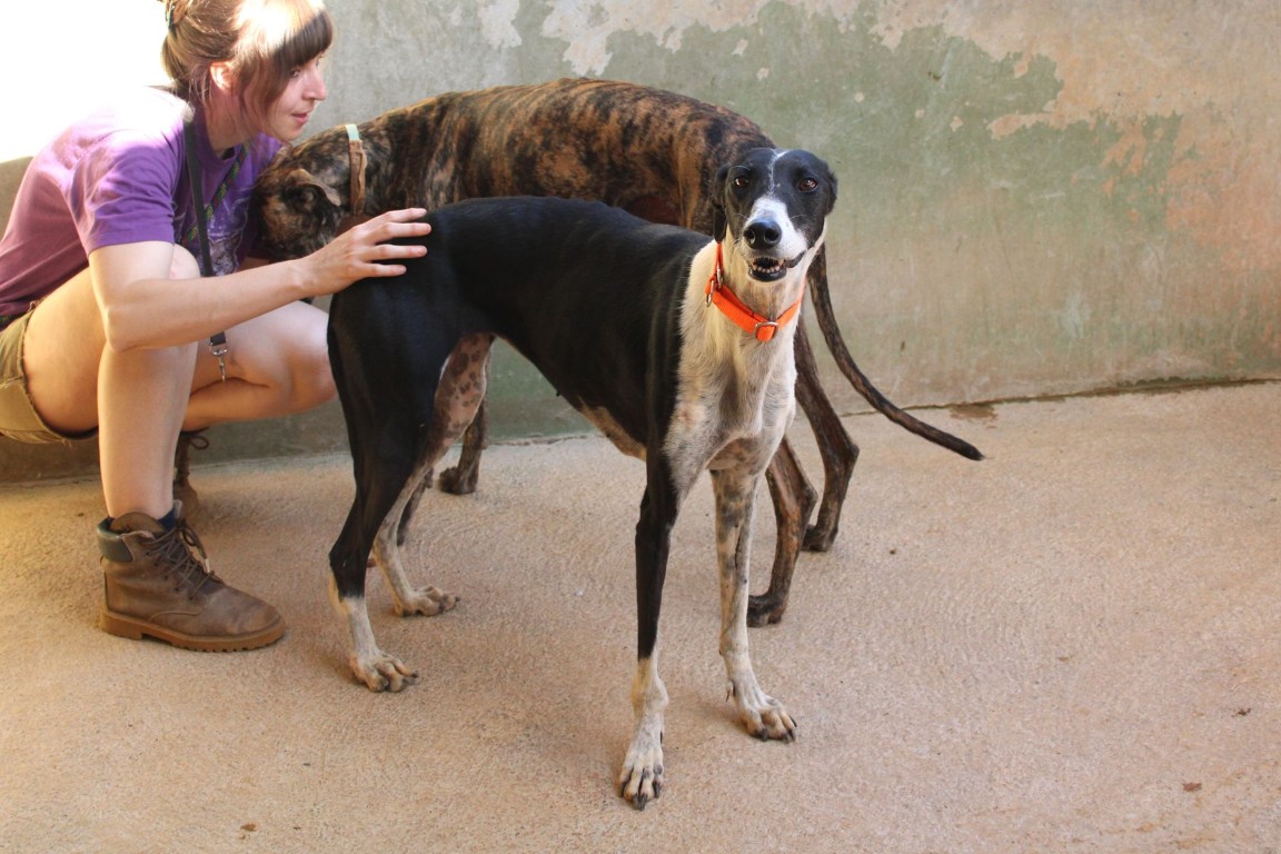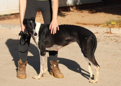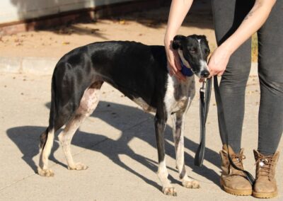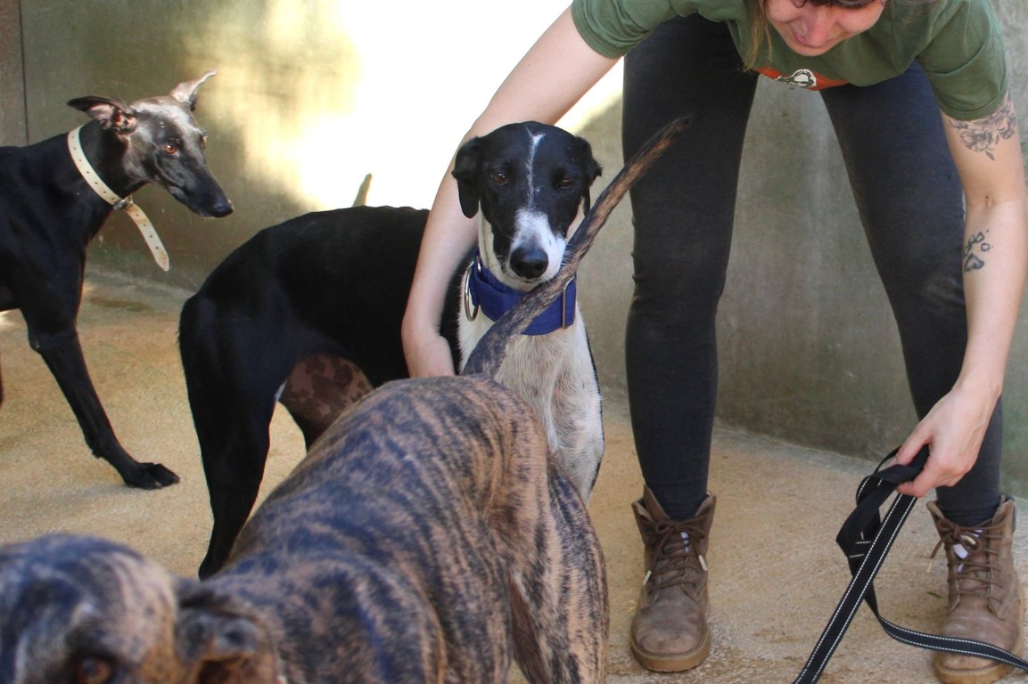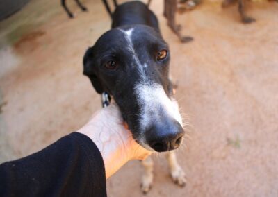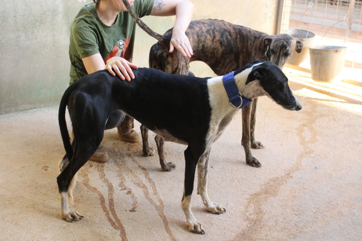 Alegría est une galga très douce, calme et sociable 💕 Elle s’entend à merveille avec ses compagnons de box, et les autres chiens seront essentiels à son équilibre et son épanouissement 🐶