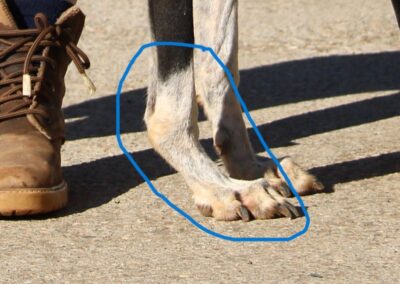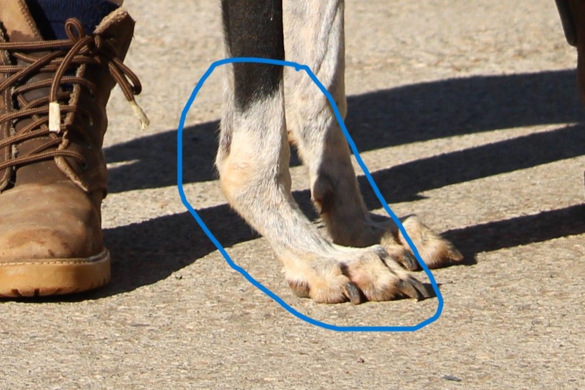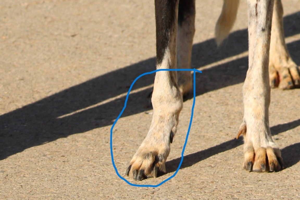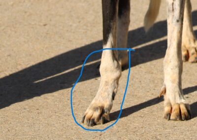 Elle a une ancienne fracture du carpe à la patte avant droite, recalcifiée naturellement, elle marche très bien et n’en souffre pas du tout