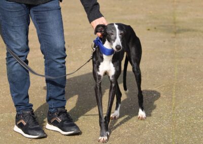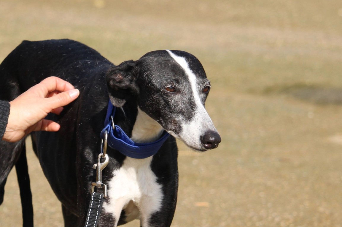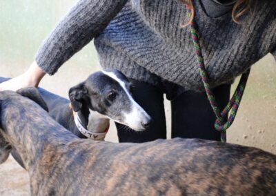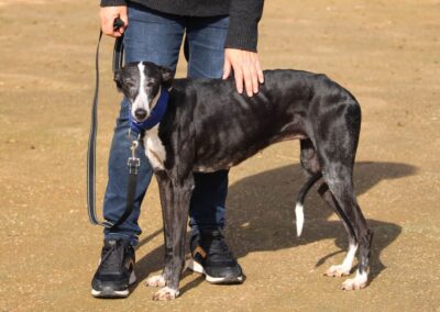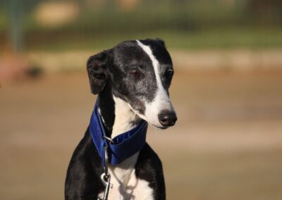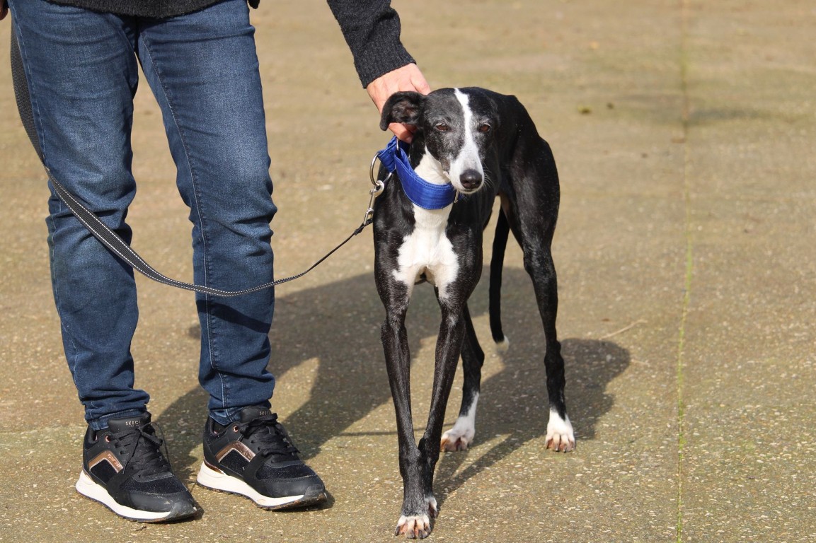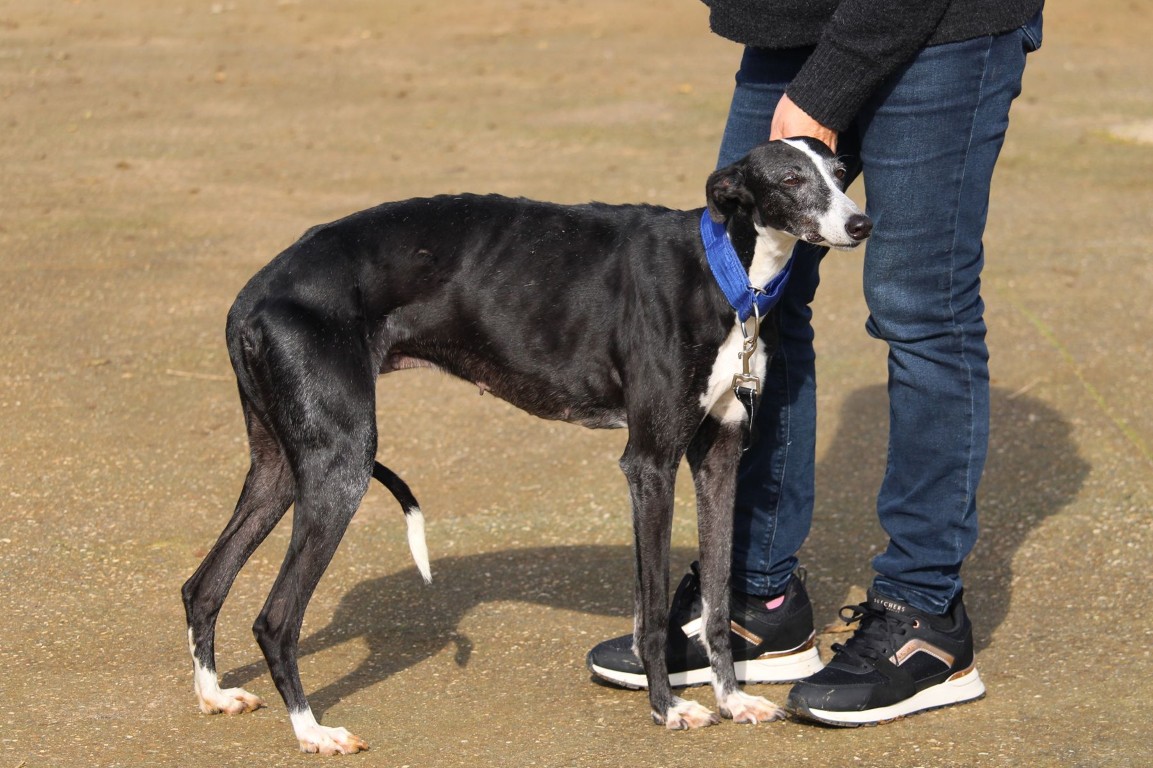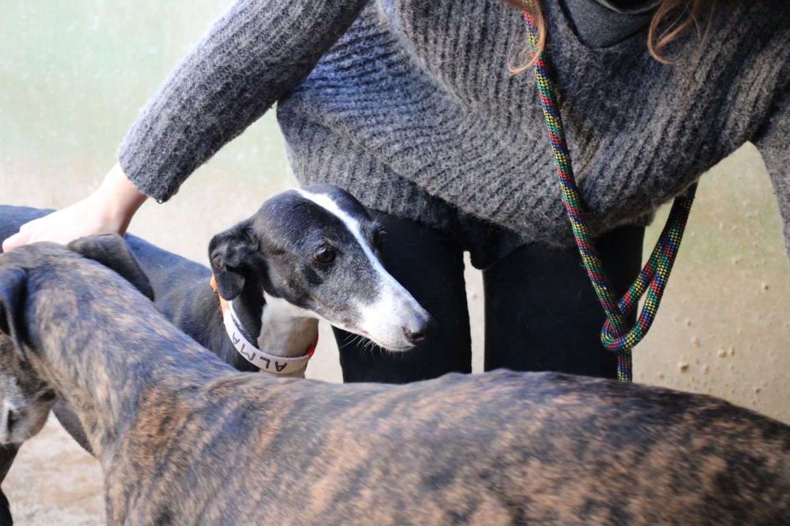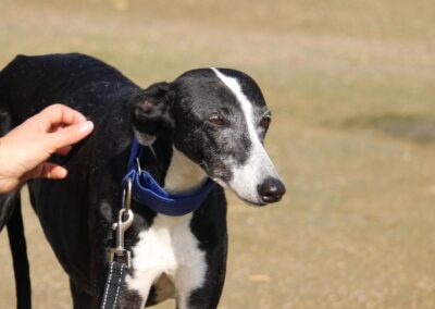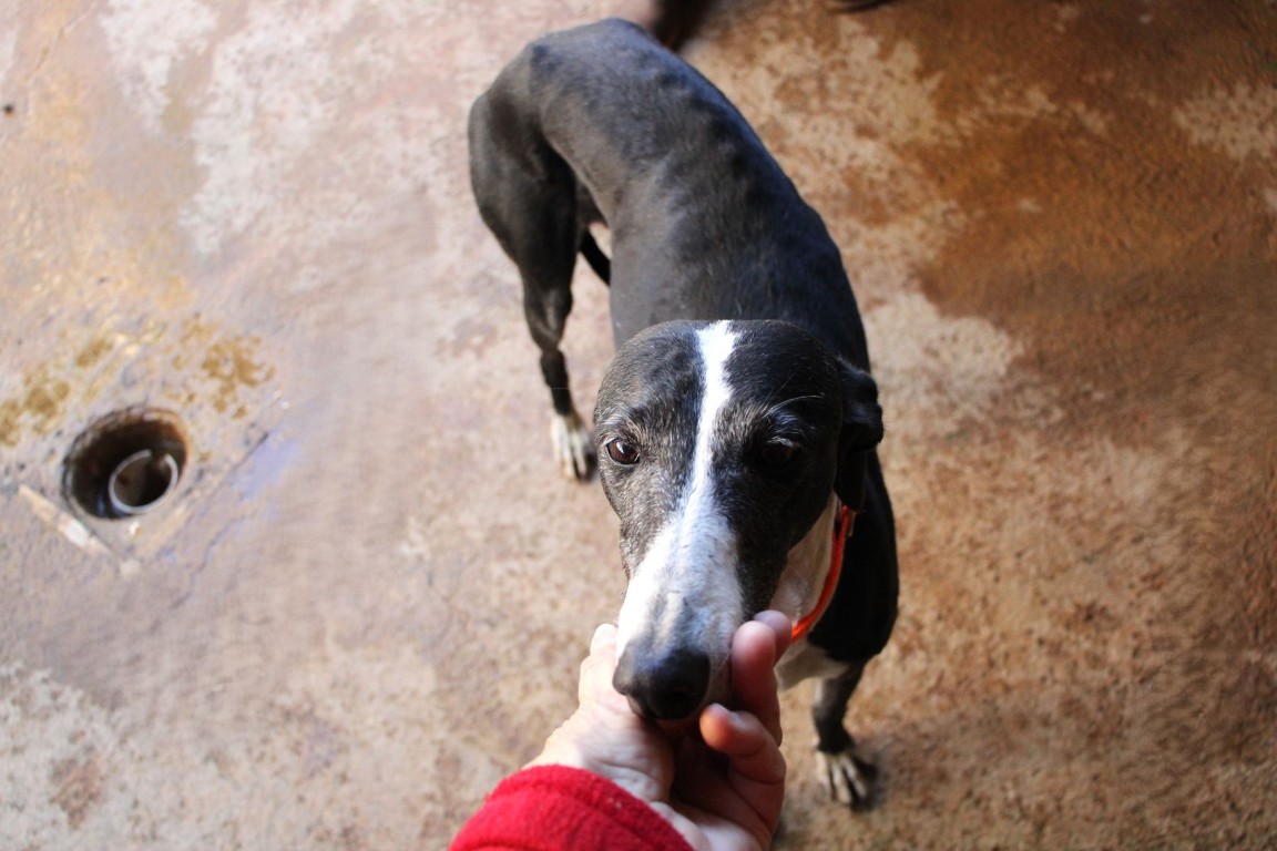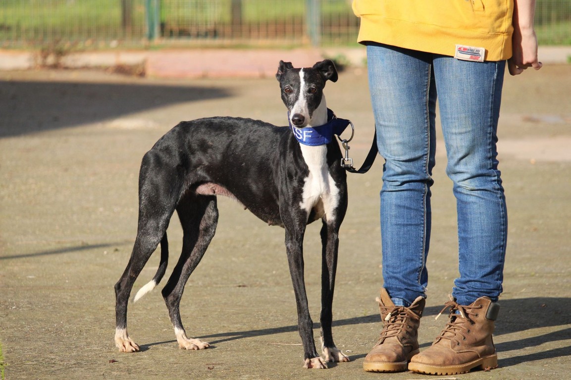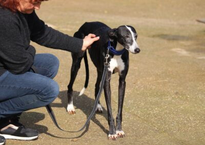 Alma est une galga noire et blanche absolument merveilleuse ✨. Une petite chienne douce et attachante, avec de magnifiques cils blancs qui illuminent son regard 🌟. Abandonnée au refuge de la FBM par un galguero, Alma n’a très certainement pas eu une vie facile…