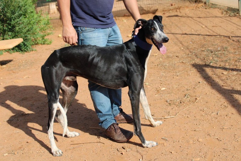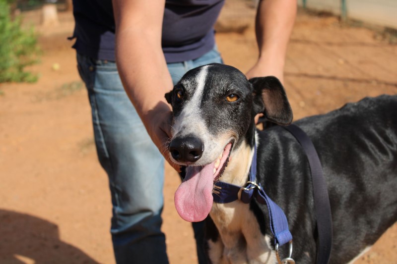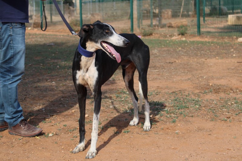 Alpachino est un galgo sociable et très démonstratif, il apprécie le contact humain et supporte mal l’enfermement. Dès qu’il voit un de ses soignants passer il s’accroche aaux grilles de son box pour attirer l’attention et obtenir une caresse. Il a une ancienne fracture recalcifiée à la patte avant droite,  qui ne l’empêche pas de mener une vie normale, il ne boite  pas et n’en souffre pas. Il s’entend très bien avec ses congénères. Il aura besoin d´une famille relativement présente et où il y aura au moins un autre chien et un jardin pour se dépenser. Si vous avez un coup de cœur pour lui, n’hésitez pas à remplir notre formulaire de demande d’adoption en ligne.