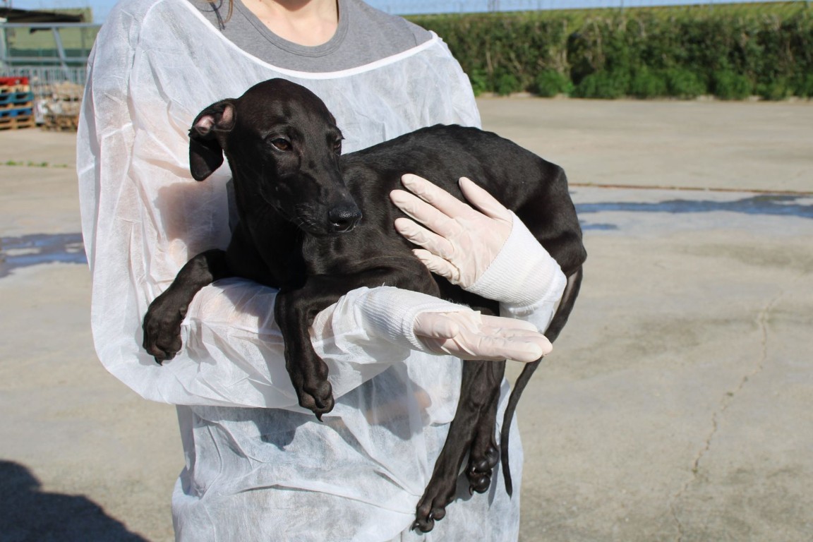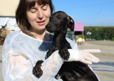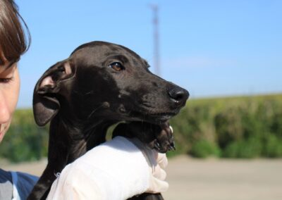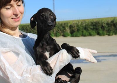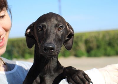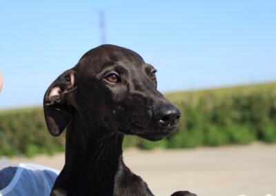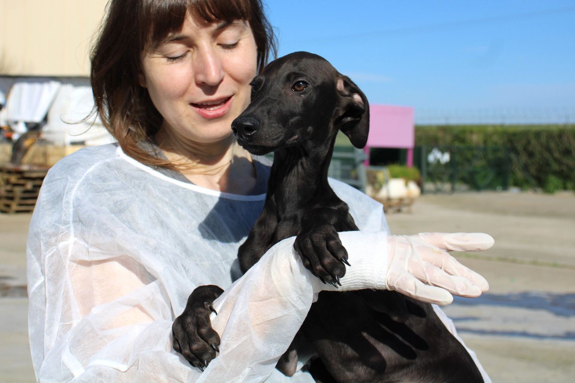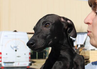 Ses chiots sont pris en charge par Lévriers sans Frontières et proposés à l’adoption.