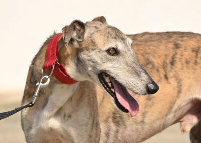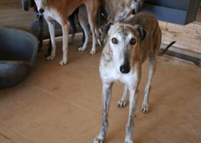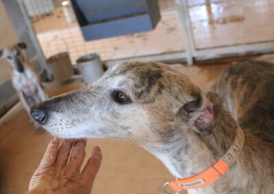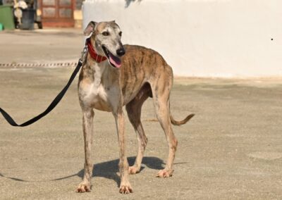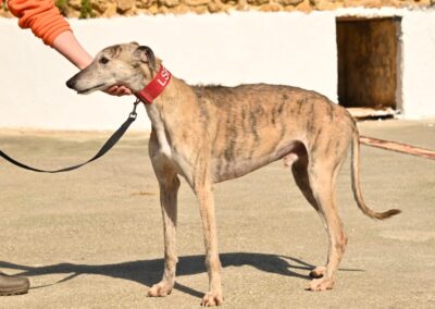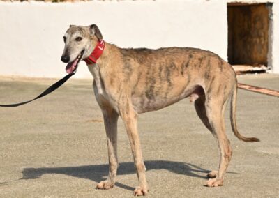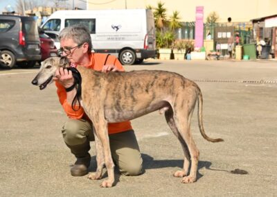 C’est un galgo sociable, qui s’entend très bien avec ses congénères et apprécie leur présence. Avec l’humain, Anam se montre proche, doux et confiant. Il a cette façon discrète mais sincère d’être là, toujours présent, toujours fidèle… le genre de chien qui devient vite un véritable compagnon de vie.