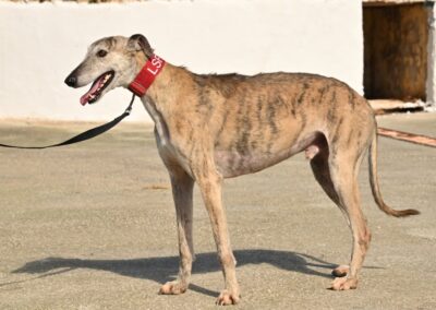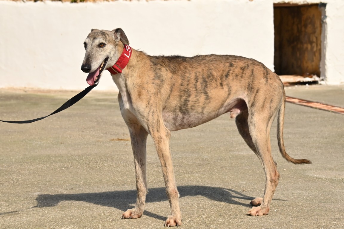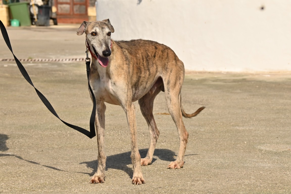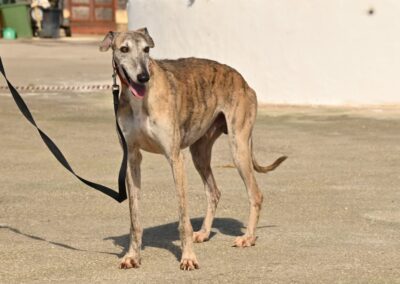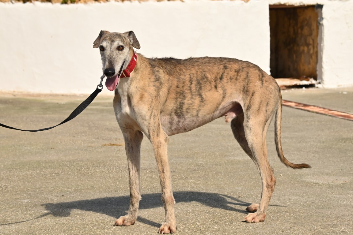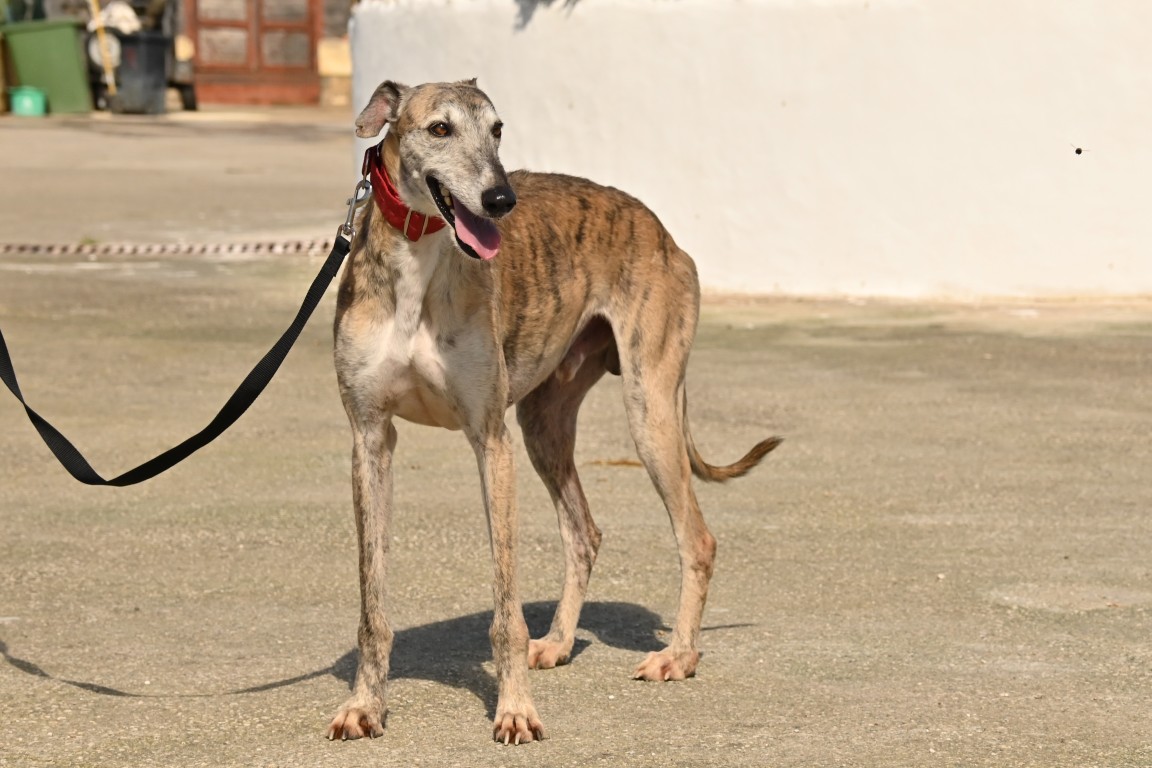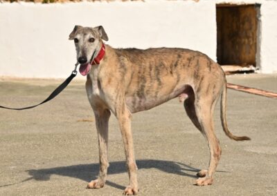 À l’instant où l’on pose les yeux sur Anam, on remarque tout de suite son allure… ce joli galgo bringé, avec son petit côté barbudo aux poils un peu plus longs, qui lui donne un charme fou et un air tellement attachant. 🐾✨