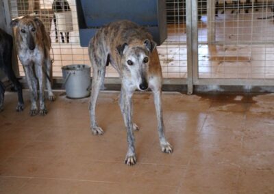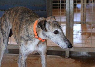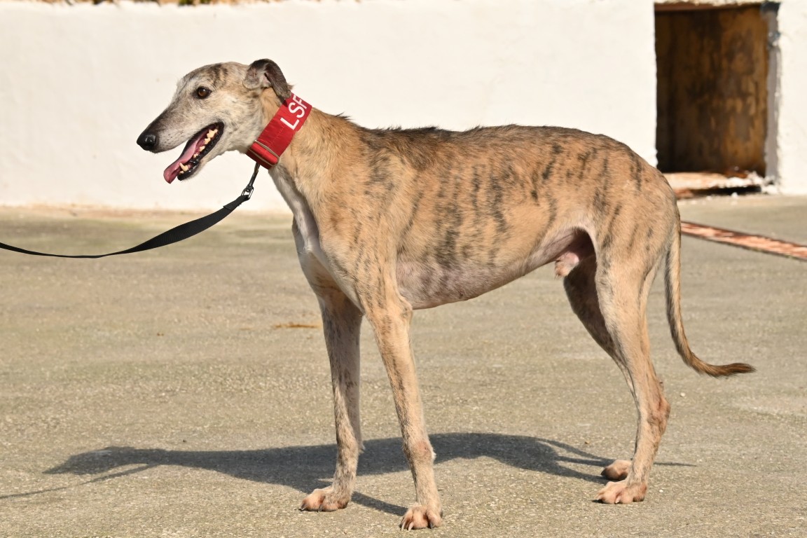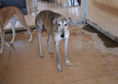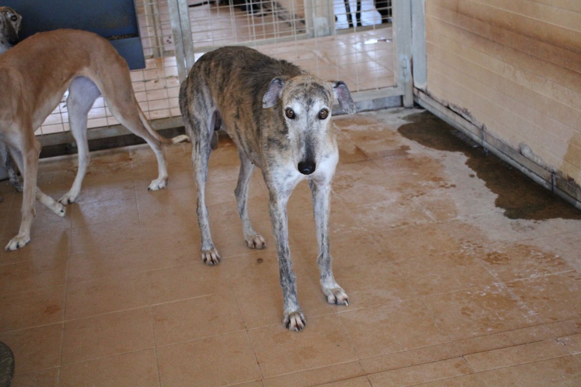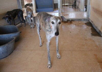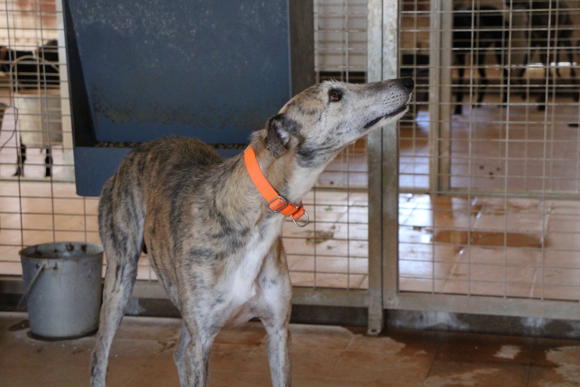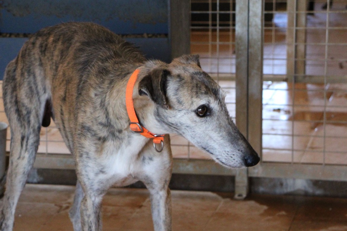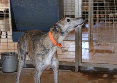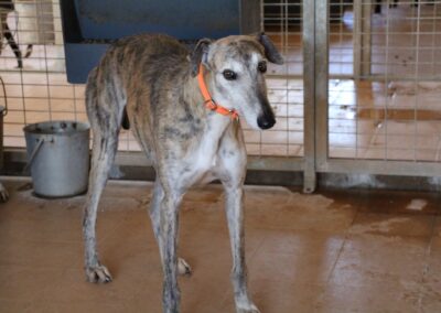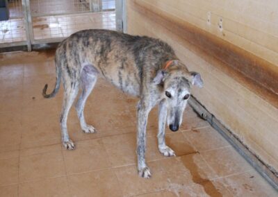 Comme malheureusement beaucoup de galgos en Espagne, Anam a été abandonné en janvier 2026 au refuge de la FBM par son galguero. En Espagne, les galgos sont souvent utilisés pour la chasse, et lorsque la saison se termine, beaucoup sont simplement réformés. Trop vieux, pas assez performants, ou tout simplement devenus inutiles aux yeux de ceux qui les utilisaient.