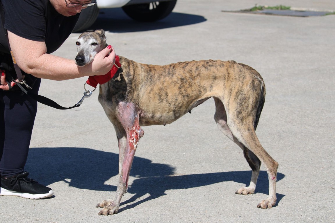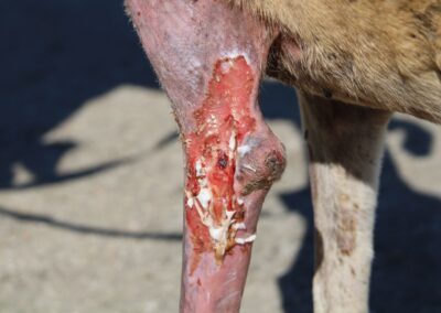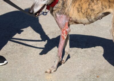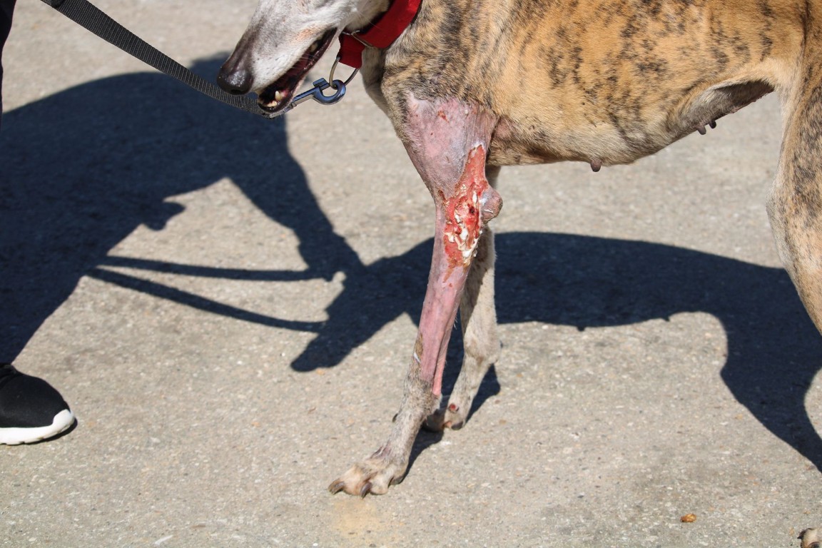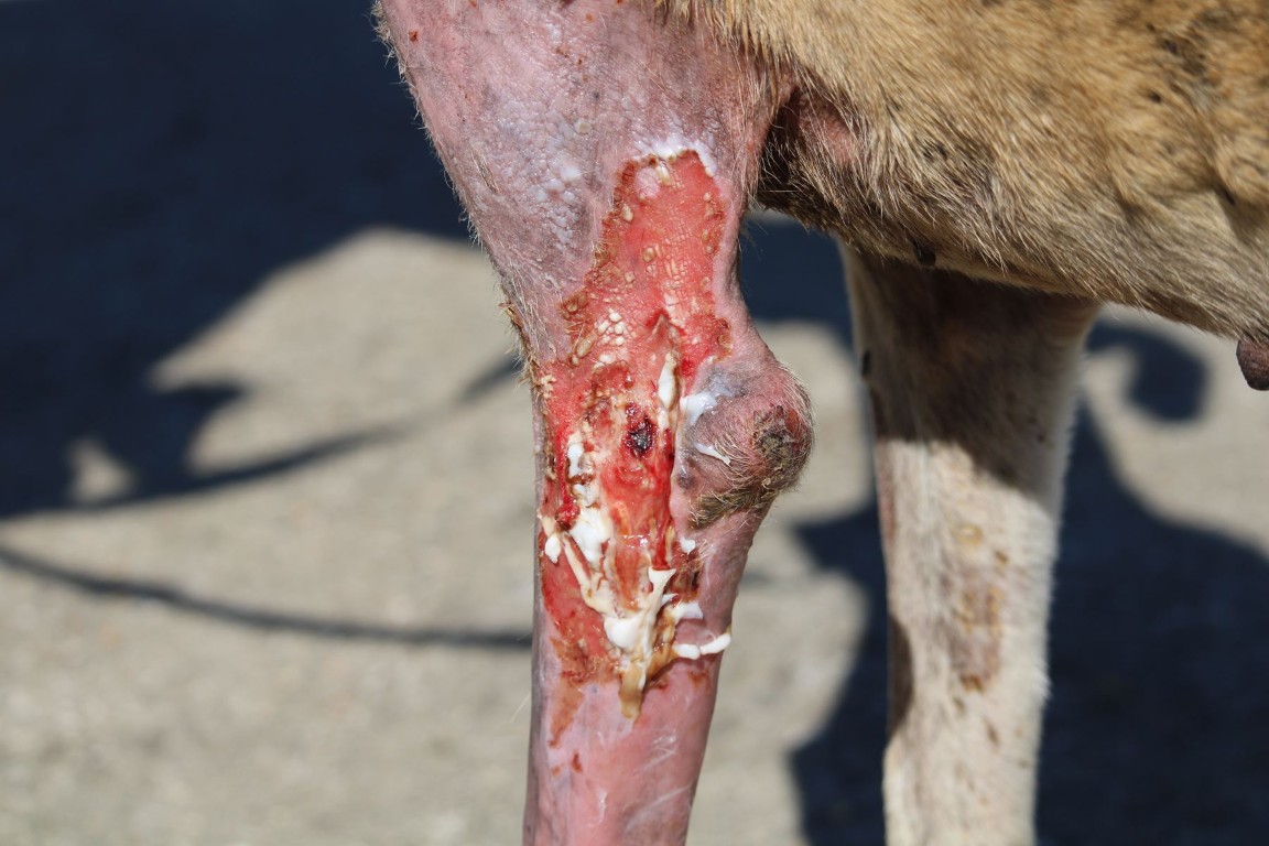 Lorsqu’elle est arrivée, son état était épouvantable : d’une maigreur extrême, affaiblie, et avec une blessure importante à la patte avant gauche , comme une brûlure, qui est encore en cours de cicatrisation.