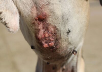Aura porte aussi les traces visibles de sa vie de misère , elle a une hernie abdominale et des tumeurs mammaires, très probablement aggravées par des années passées à dormir à même le béton…