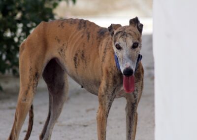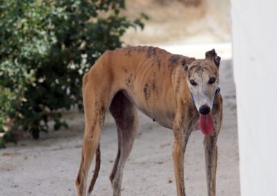 Elle a été abandonnée au refuge d’Écija par un galguero tristement connu pour la violence qu’il inflige à ses chiens . Ses galgos survivent dans des conditions effroyables : gourbis insalubres, peu de nourriture, aucune tendresse…