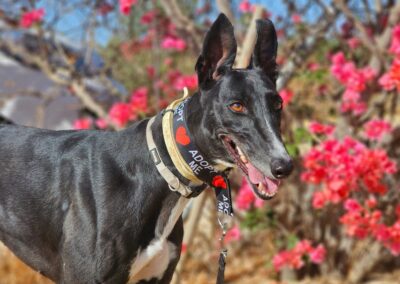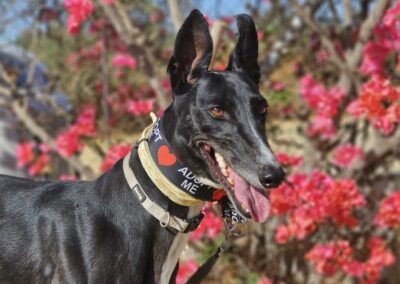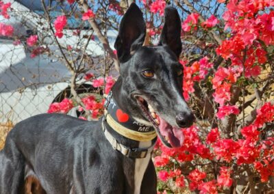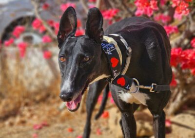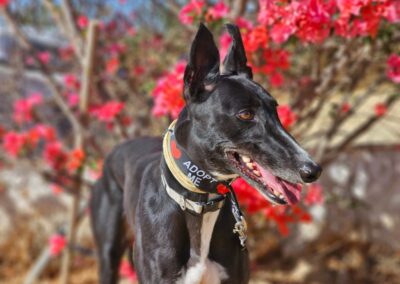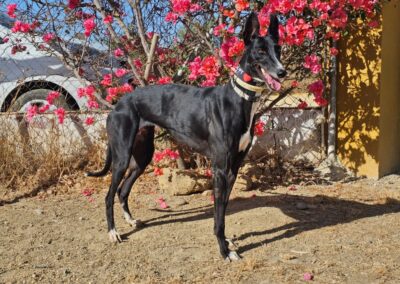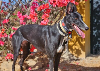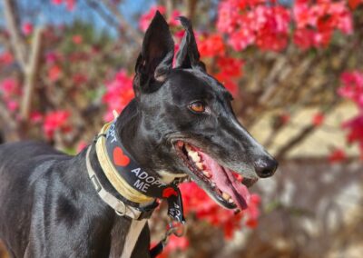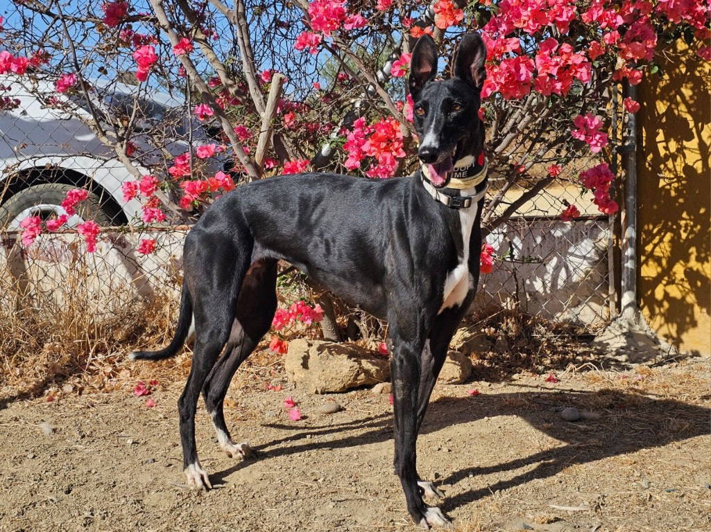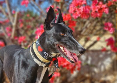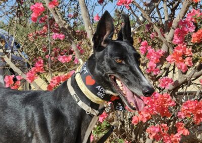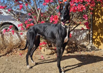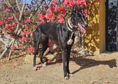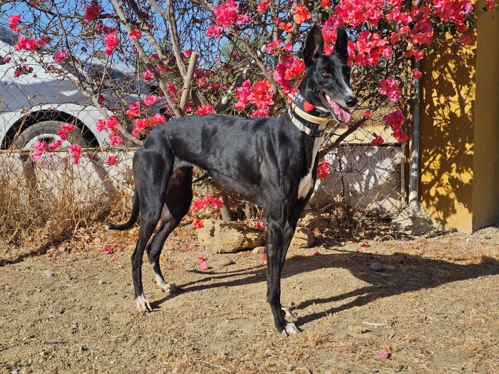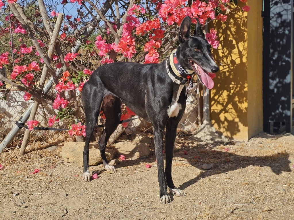 Avec son élégance naturelle et ses adorables oreilles en bataille qui semblent avoir leur propre langage, Bimba est une galga noire aussi joyeuse qu’attachante. Elle dégage une énergie positive qui illumine le quotidien de ceux qui croisent son chemin.