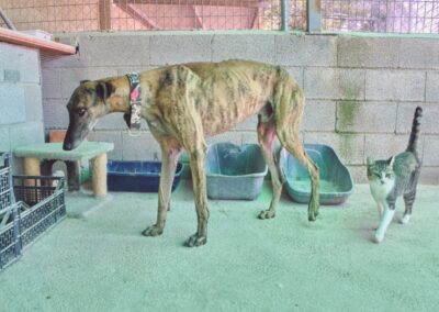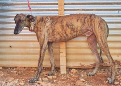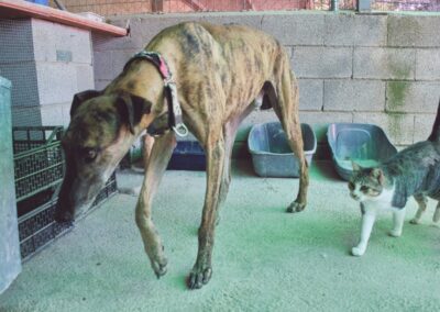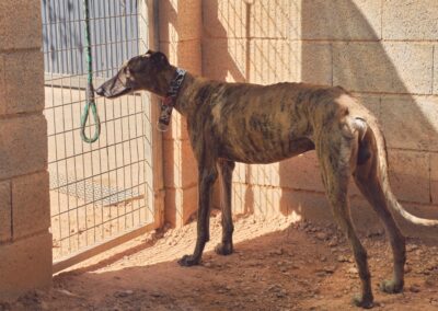C’est le cas de Bolto, un superbe galgo mâle de 2 ans. Le week-end dernier, il a été retrouvé gisant sur un terrain vague, complètement déshydraté 😢, abandonné par son galguero comme un objet devenu inutile. Heureusement, il a pu être secouru à temps et pris en charge par le refuge de Tobarra.