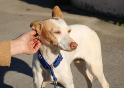 Cette petite podenca est câline et très sociable, et elle apprécie plus que tout le contact humain. Malheureusement, elle supporte de moins en moins l’enfermement et le stress ambiant qui règnent au refuge. Nous espérons de tout cœur qu’elle trouvera rapidement une famille aimante qui saura lui offrir la vie qu’elle mérite. Britney est une petite merveille, et ses futurs adoptants seront comblés par sa gentillesse et son affection.
