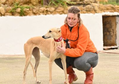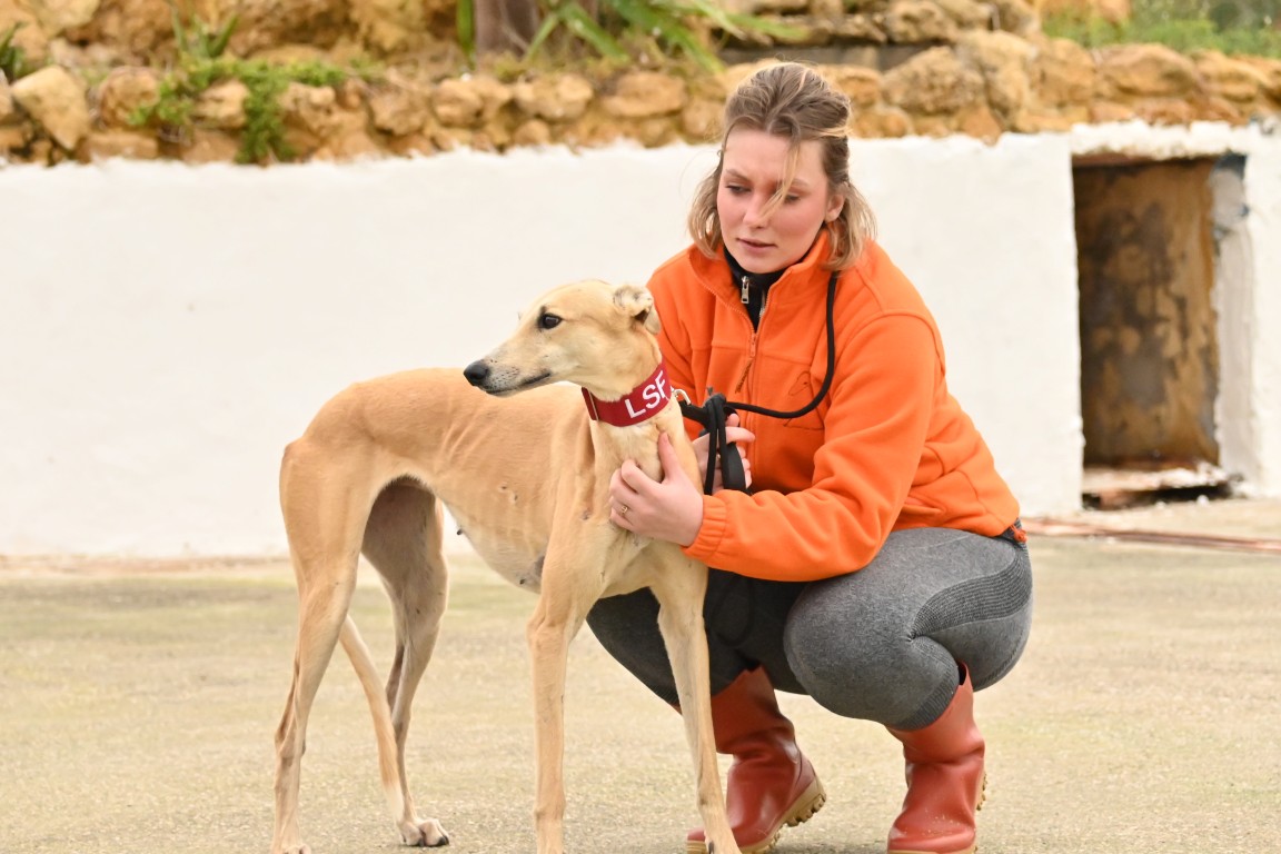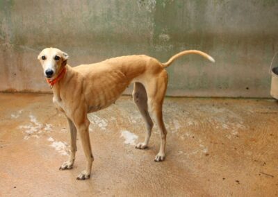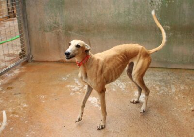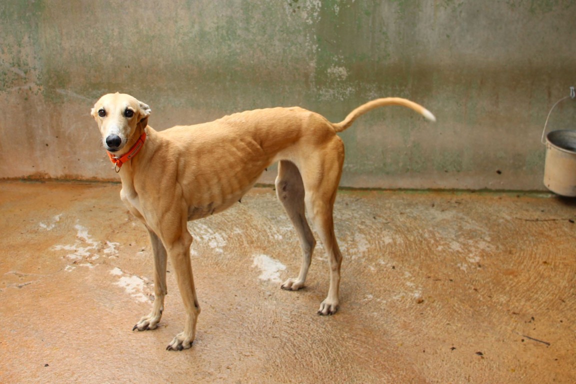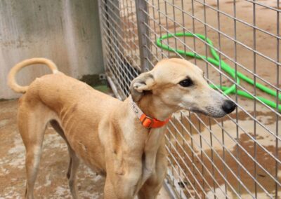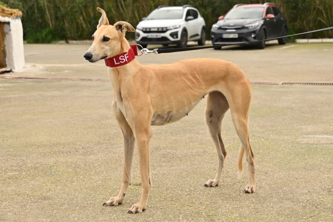 Abandonnée par un galguero en fin de saison de chasse 💔, Cactus porte une ancienne fracture à l’épaule droite, aujourd’hui recalcifiée.
