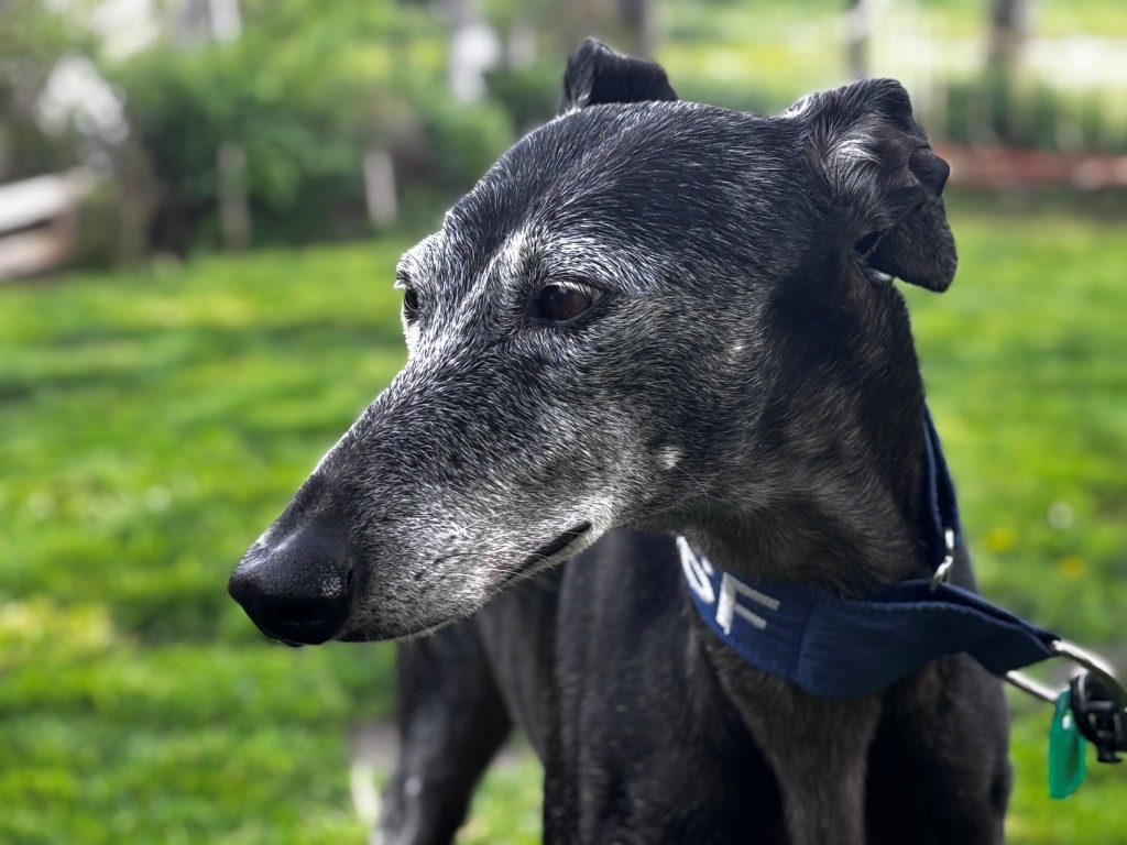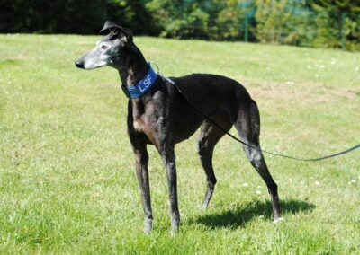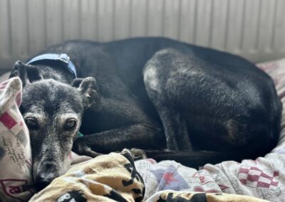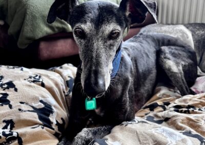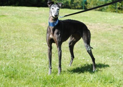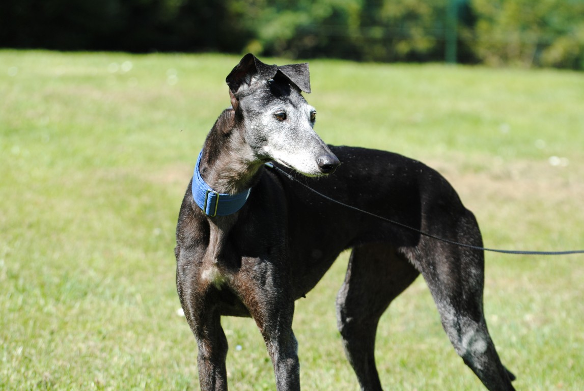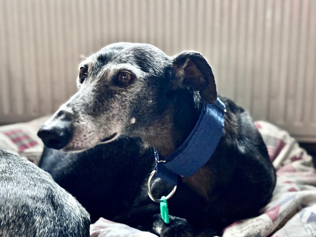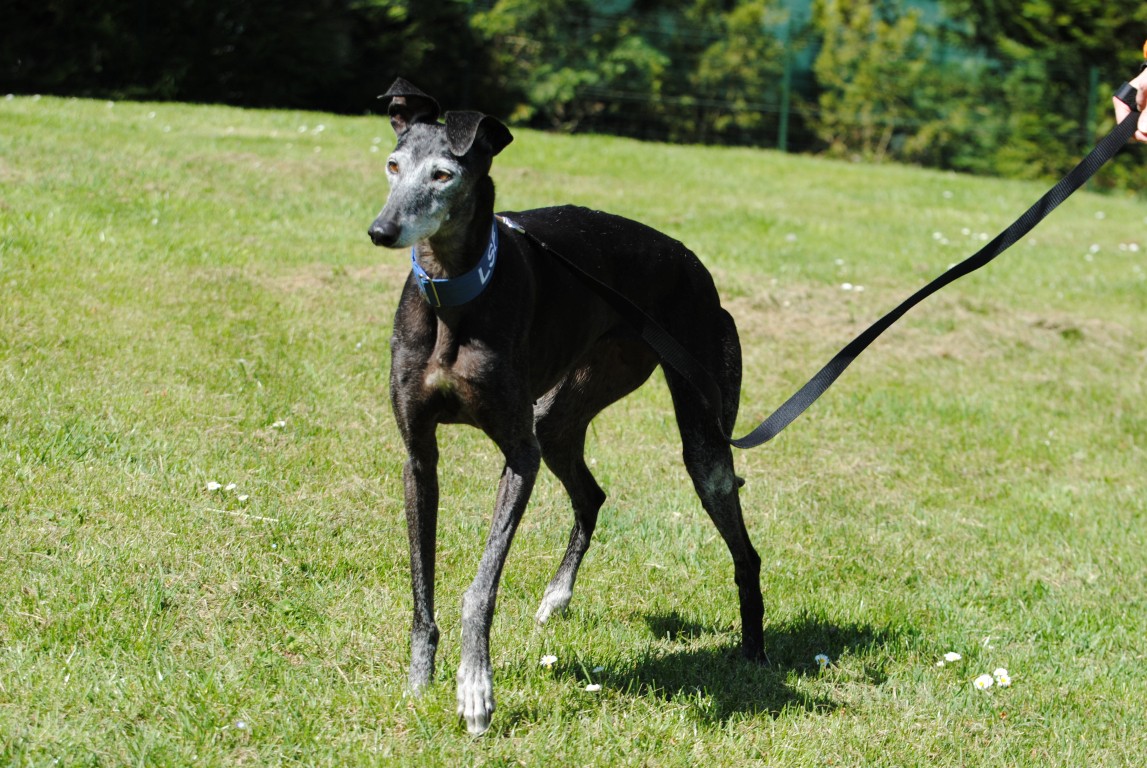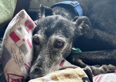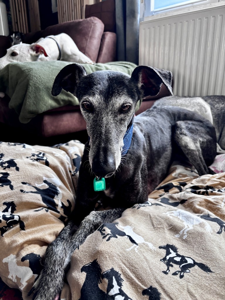 Capricho est adorable galga noire de 7 ans 💔Elle est remontée en France dans notre transport du 18 avril et est en accueil chez Sylvain, notre délégué du Nord ( 59) .
