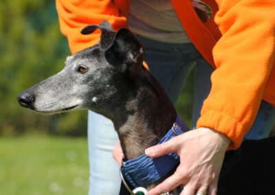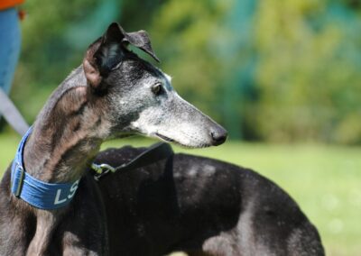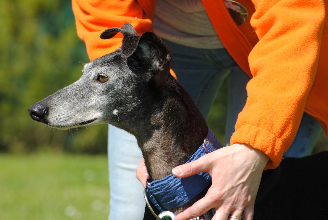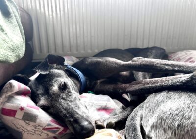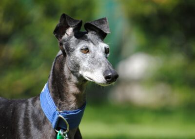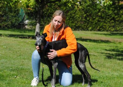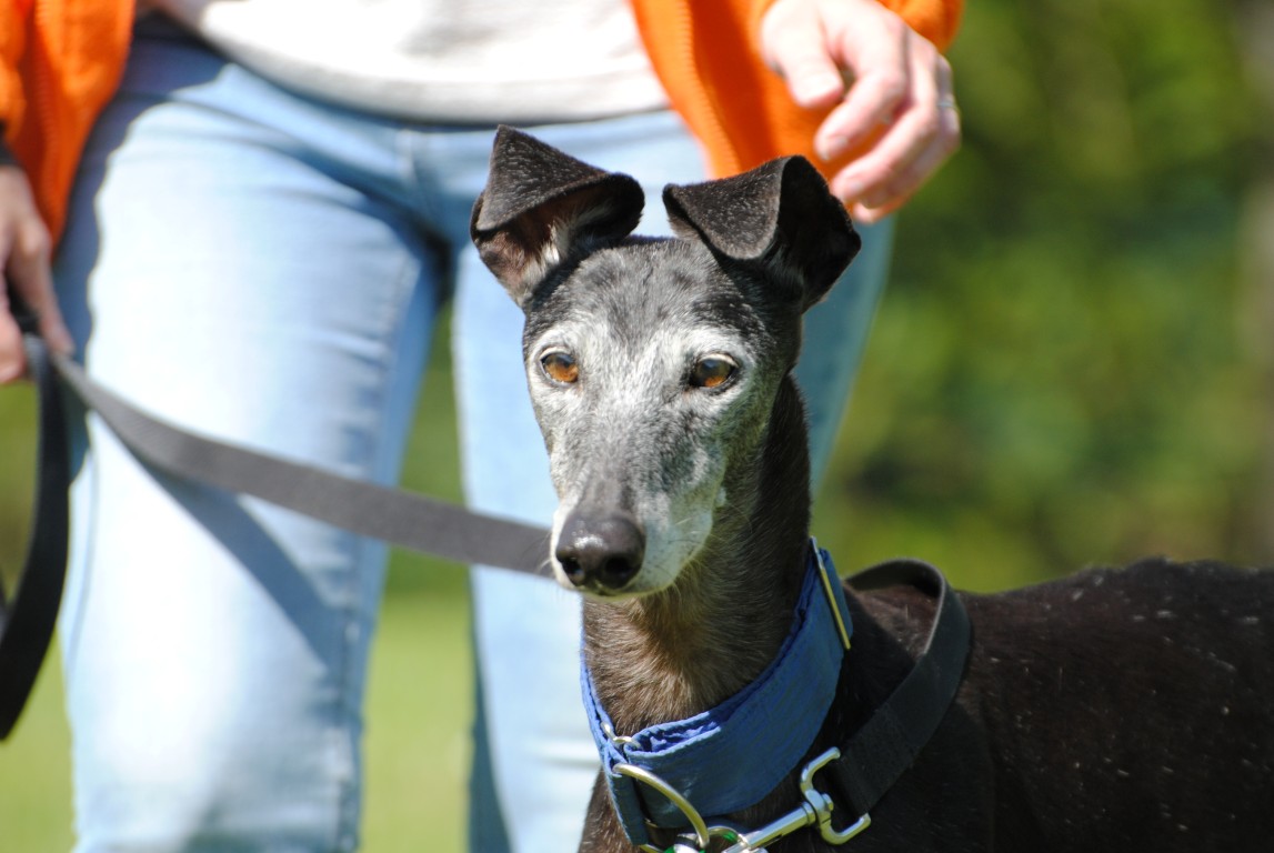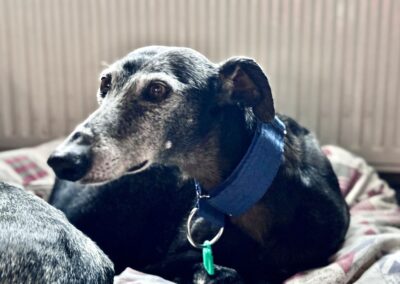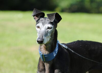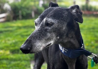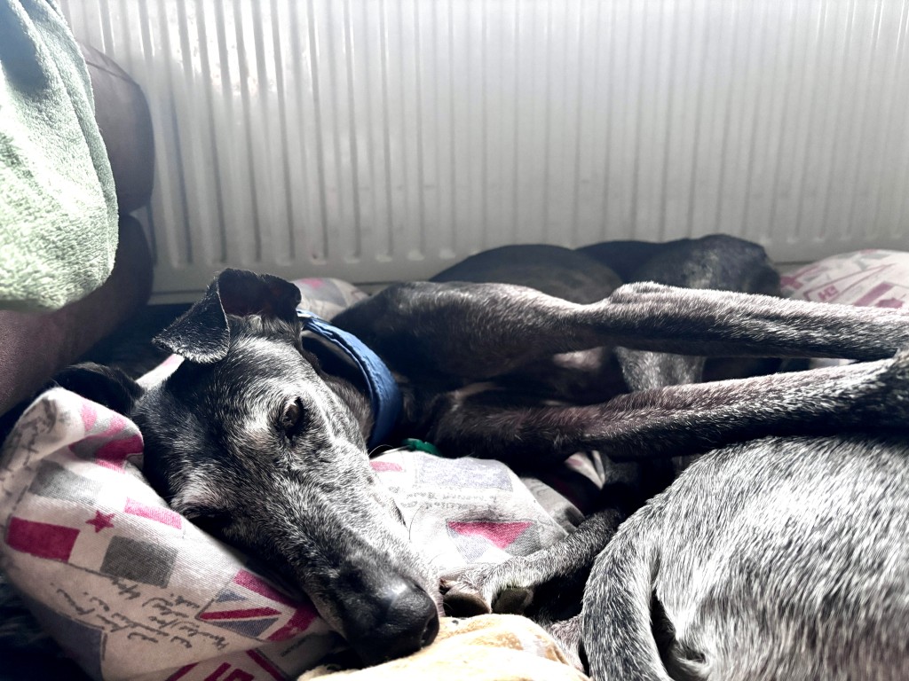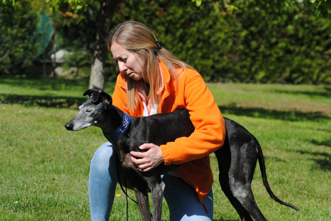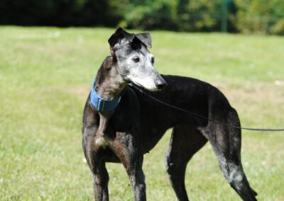 Capricho est adorable galga noire de 7 ans 💔Elle est remontée en France dans notre transport du 18 avril et est en accueil chez Sylvain, notre délégué du Nord ( 59) .