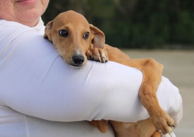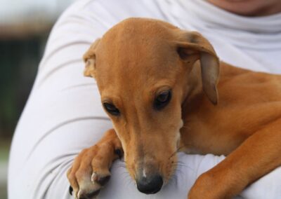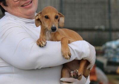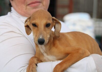 Ses chiots sont pris en charge par Lévriers sans Frontières  et proposés à l’adoption.