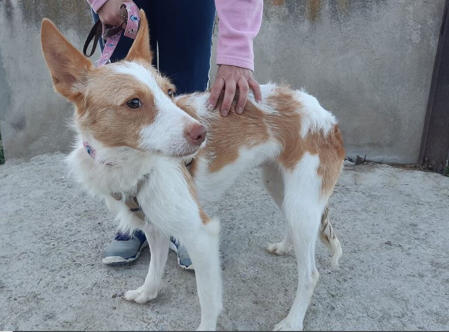 Carmen est une toute jeune podenca qui a vécu dans la rue pendant un moment avant d’être capturée par les bénévoles d’Abyda. Elle a la patte avant droite un peu tordue, séquelle d’une ancienne fracture recalcifiée dont elle ne souffre pas, et qui ne l’empêche ni de courir ni de jouer. Elle commence à se sentir à l’aise avec les personnes qu’elle connait et vient même au contact dans les endroits fermés où elle se sent en sécurité pour se faire caresser. Par contre elle a tendance a paniquer lorsqu’elle est en laisse et il faudra au début être vigilant avec les promenades tant qu’elle ne sera bien à l’aise dans sa famille. Elle s’entend bien avec ses compagnons de box dont elle apprécie la compagnie. Pour son adoption, un petit jardin et un compagnon seront indispensables.