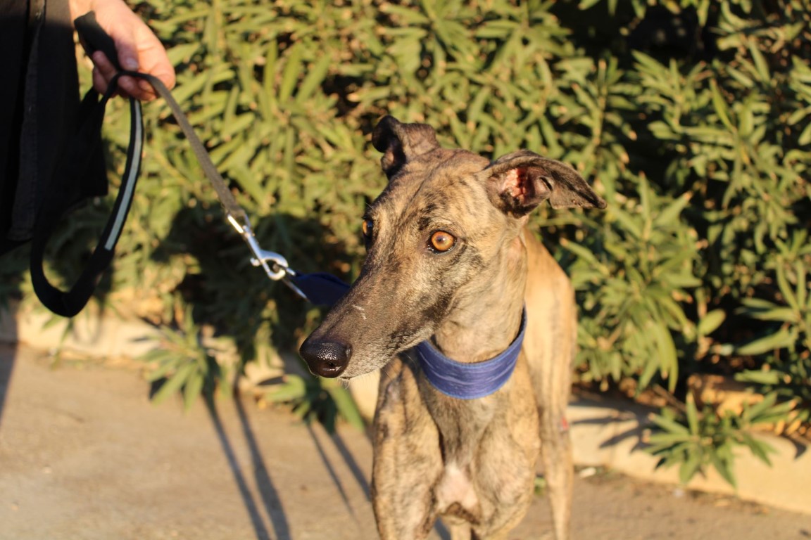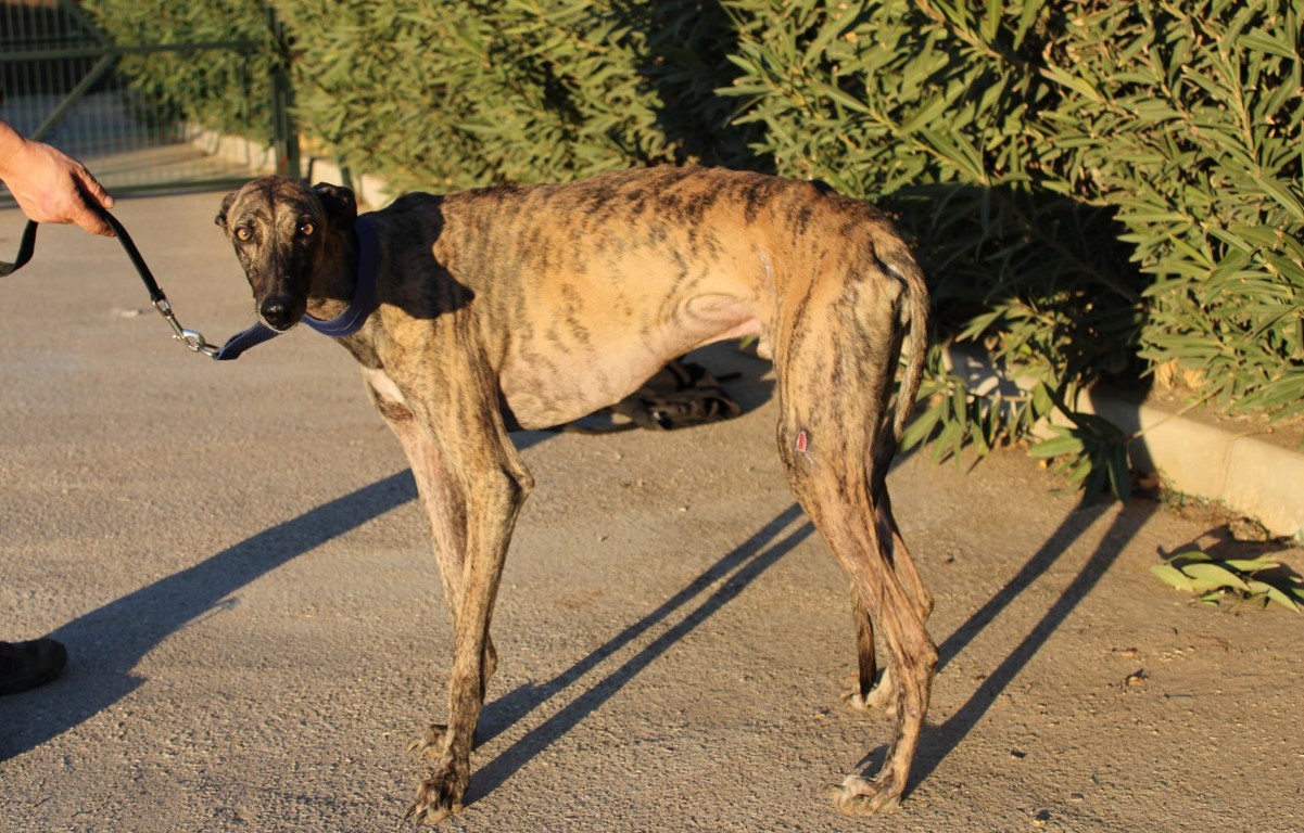 Plus de dodo, plus de confort, plus de câlins , plus de famille, rien que du froid et du bruit. Ce galgo a été abandonné au refuge de la FBM par sa famille qui l’avait adopté alors qu’il n’était encore qu’un bébé. Nous étions présents lorsque son adoptante l’a laissé et je peux vous dire que ça a été terrible pour nous d’entendre hurler quand sa maîtresse s’est éloignée et de le mettre en box au milieu des autres chiens a été un véritable crève-cœur. Un moment que nous n’oublierons jamais. Il a beaucoup changé me dit notre bénévole Maité, il est devenu très maigre et son regard est triste à mourir., comble de malheur il a été attaqué par les autres chiens. Dès qu’elle le sort, il appuie sa tête contre sa main ou contre sa cuisse pour recevoir des caresses et avoir un peu de réconfort. Chimo doit absolument sortir du refuge très vite, nous espérons qu’il sera adopté afin de pouvoir remonter en France dans notre transport du 15 janvier. Il aura besoin d’un environnement calme , d’un congénère et d’un jardin pour s’épanouir favorablement. C’est un galgo timide qui a peur des gestes brusques, il faut l’aborder avec tact et douceur, il s’entend bien avec les autres chiens et ne prête aucune attention aux chats.