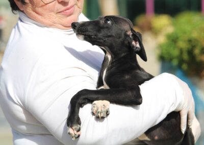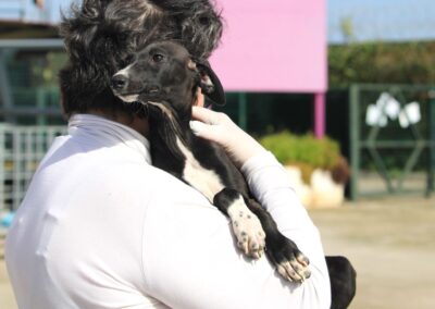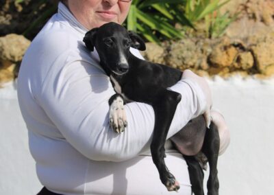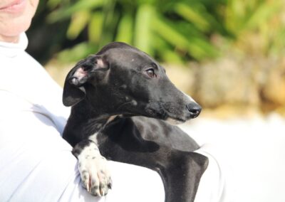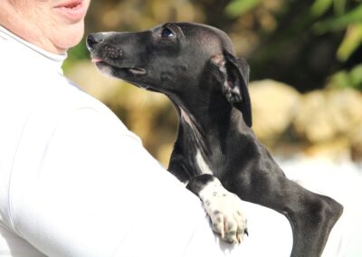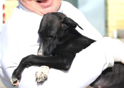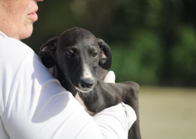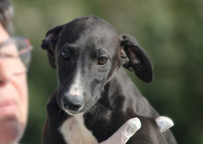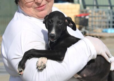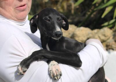Ses chiots sont pris en charge par Lévriers sans Frontières et proposés à l’adoption.