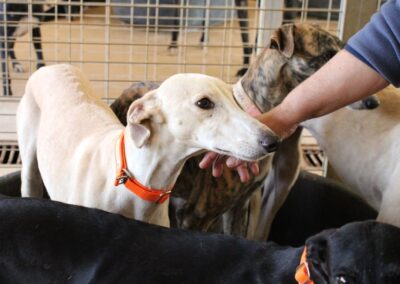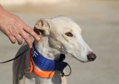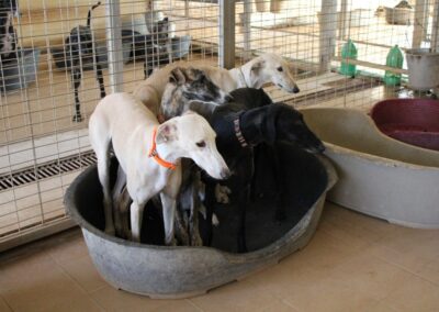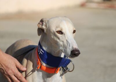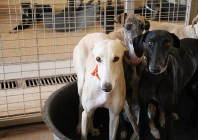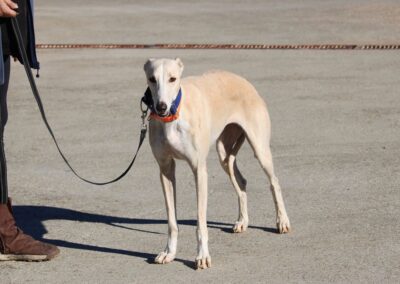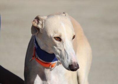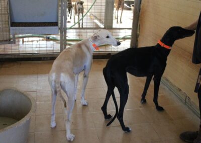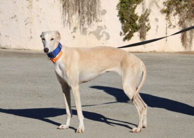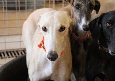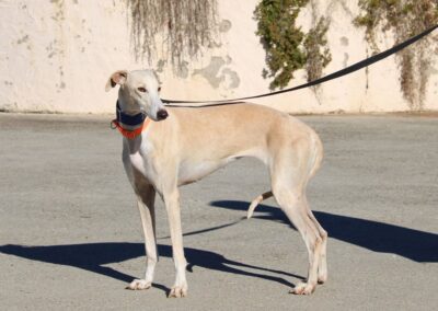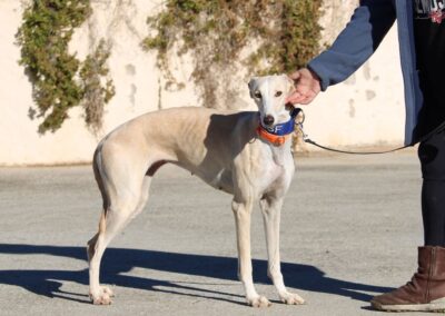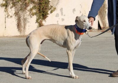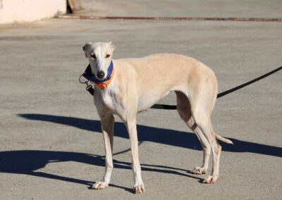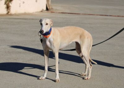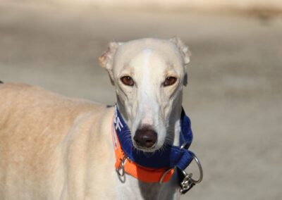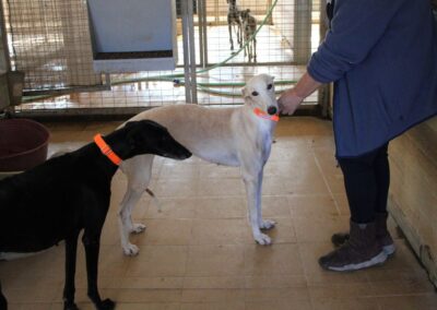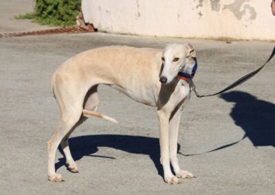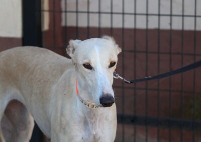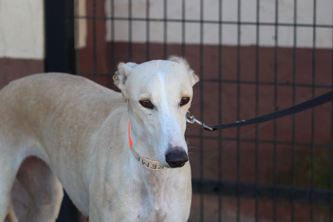 Arrivée récemment au refuge, elle reste encore un peu désorientée… Le couloir qui accueille près de 400 chiens, avec ses aboiements incessants, est un environnement très impressionnant pour une chienne aussi délicate. Crème a été abandonnée en même temps qu’une autre galga par le même galguero, et ce brusque changement de vie la déstabilise encore 💛.