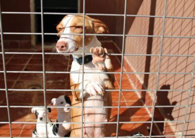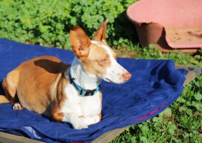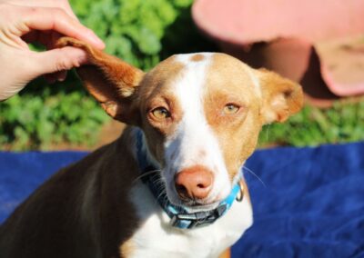 La douce Dana, petite podenca maneta, a été prise en charge par notre refuge partenaire de la FBM. À son arrivée, elle était gestante et, quelques jours plus tard, elle a donné naissance à 6 adorables chiots 🐾 : Eole, Zappa, Elysia, Julius, Martin et Alexie, eux aussi proposés à l’adoption sur notre site.