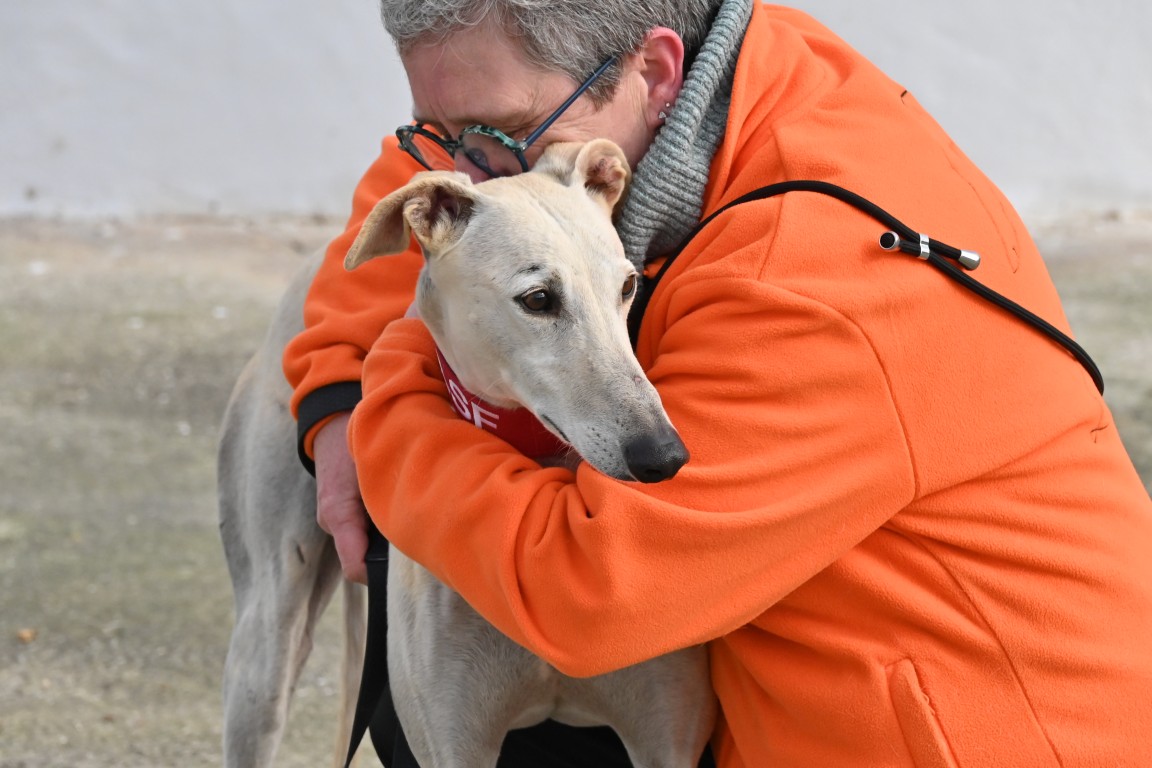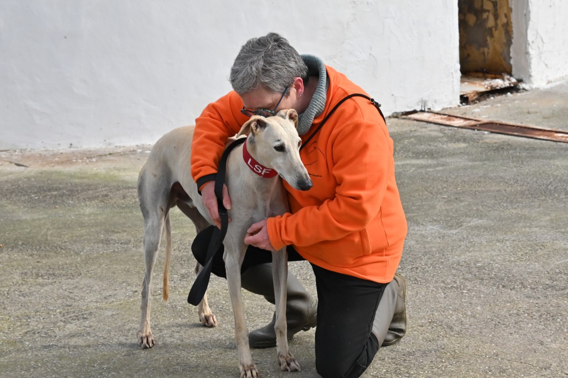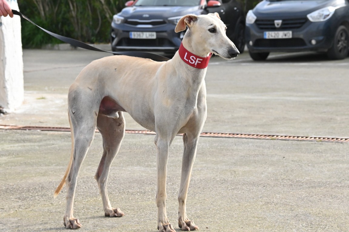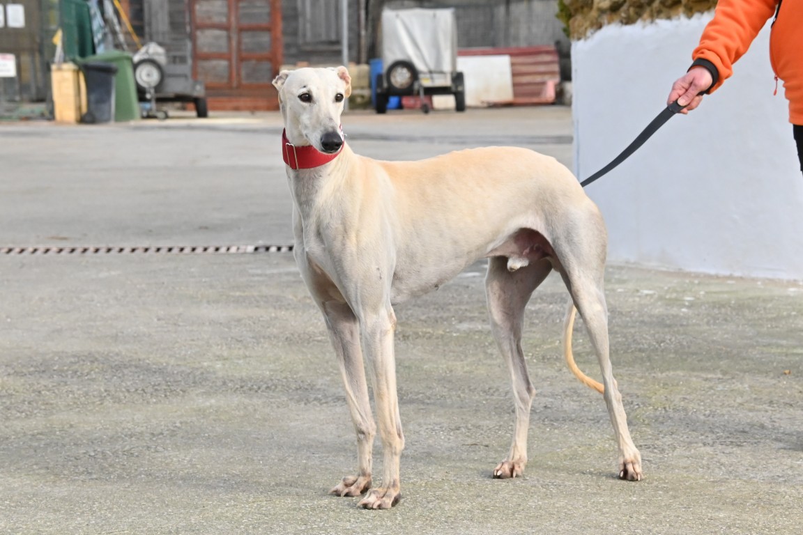 Voici Diego, un superbe galgo blanc de 70 cm, aussi élégant que gentil ✨. Il est très sociable avec l’humain et adore le contact. Impossible de ne pas craquer devant ce grand loulou au regard doux 🐾💕