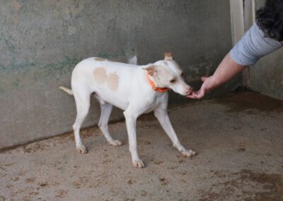 Dobby est un joli podenco blanc 🐕 avec de magnifiques oreilles bien pointues qui lui donnent un air à la fois tendre et malicieux. C’est un jeune loulou un peu timide au premier abord, mais tellement doux et attachant 🥺.