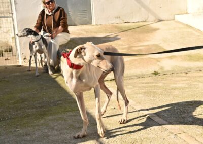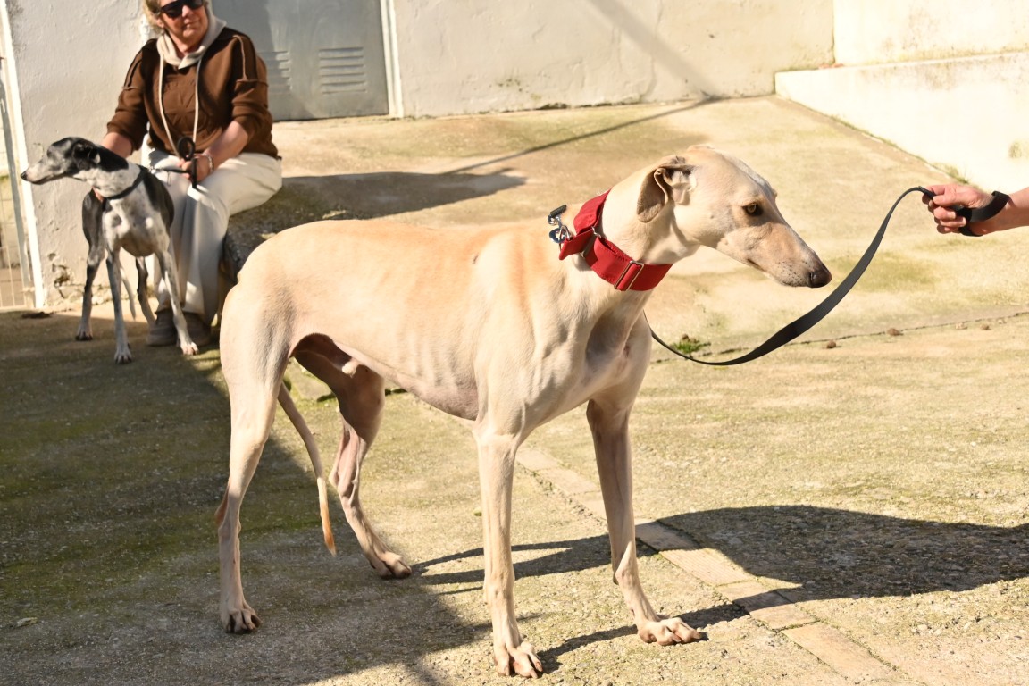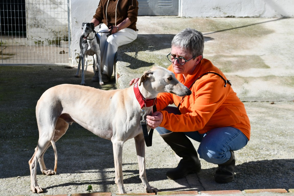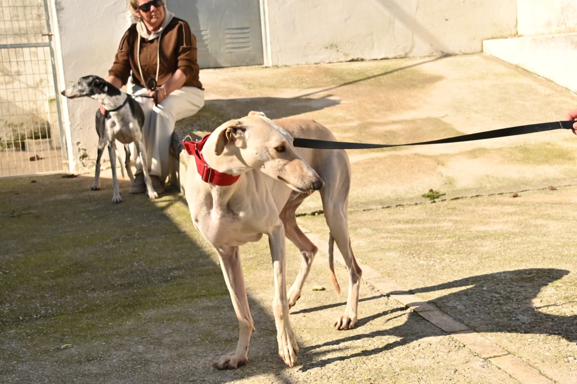 Je vis au refuge d’Écija, perdu au milieu de nulle part, avec plein d’autres copains galgos. Ici, on ne voit pas beaucoup de monde, à part les formidables bénévoles qui prennent soin de nous tous les jours. Grâce à elles, on mange bien, on est en sécurité et on reçoit quelques caresses… mais j’avoue que j’aimerais bien avoir ma famille à moi 🏡.