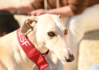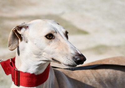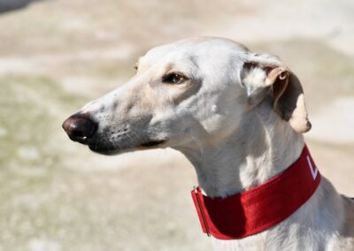 Je suis un galgo blanc de 62 cm, ce qui veut dire que pour un mâle… je suis plutôt un petit modèle. Pratique pour les câlins sur le canapé, non ? 😉🐾