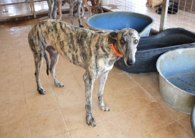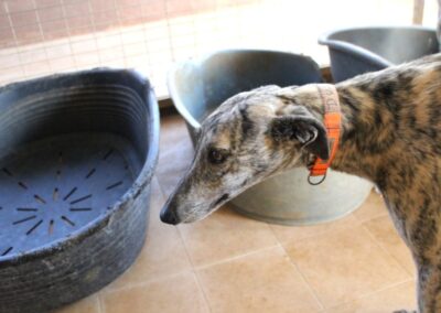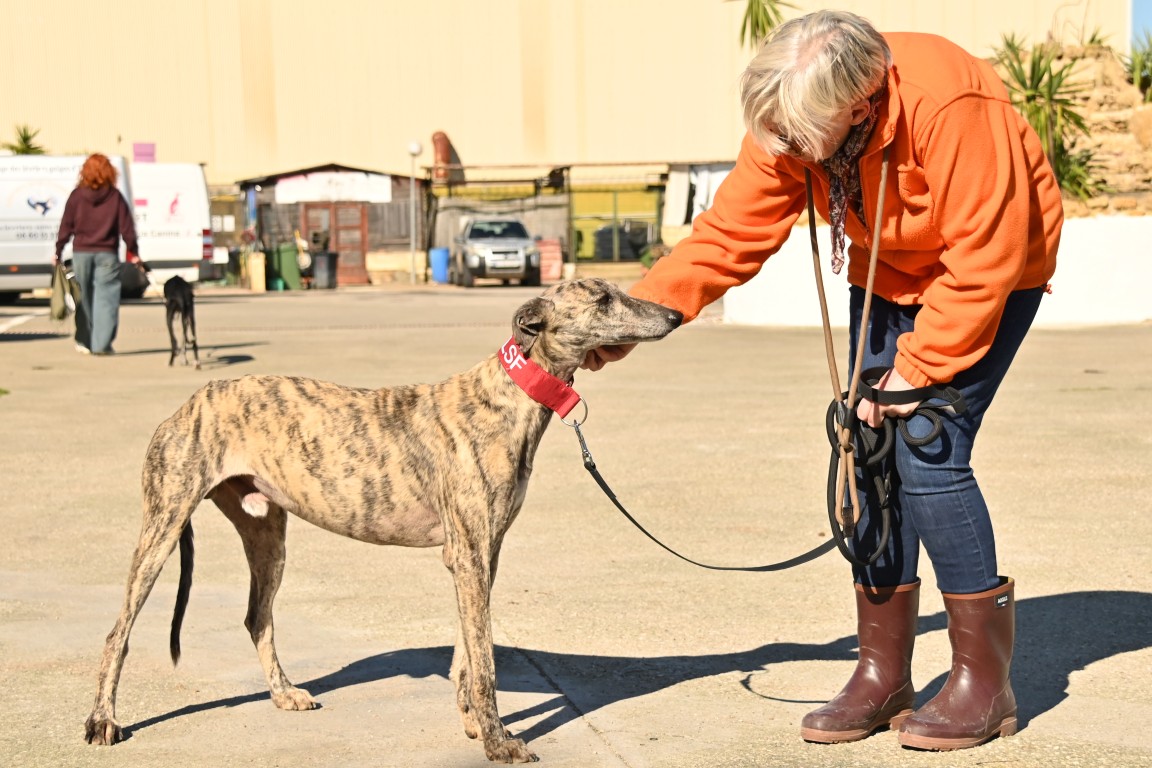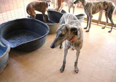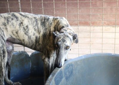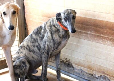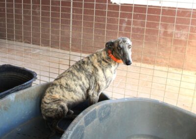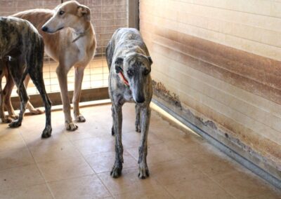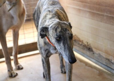 Au refuge, la situation est compliquée. Il y a énormément de chiens et beaucoup de stress, et pour les galgos sensibles comme Dustin, cela n’aide pas à progresser… au contraire, ils ont parfois tendance à régresser dans cet environnement difficile 😔