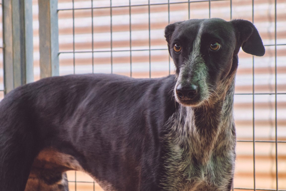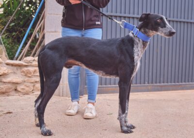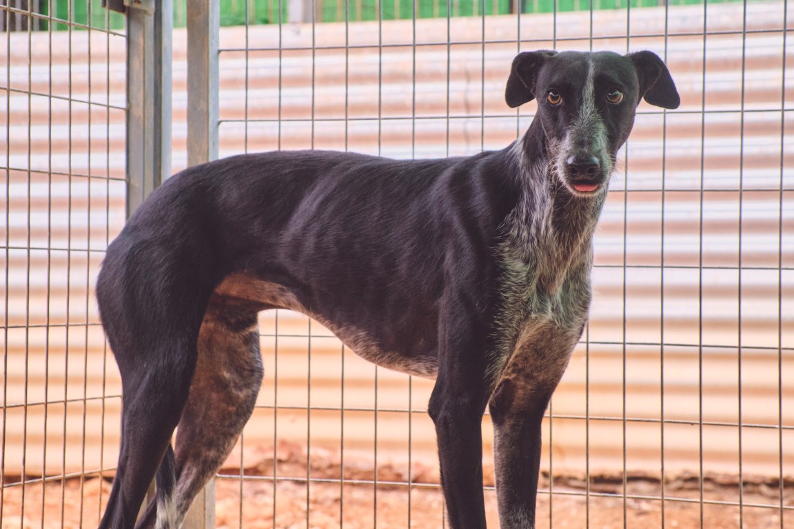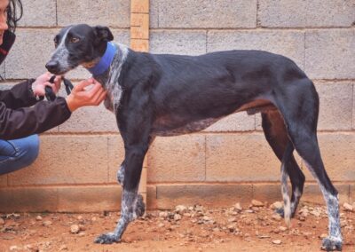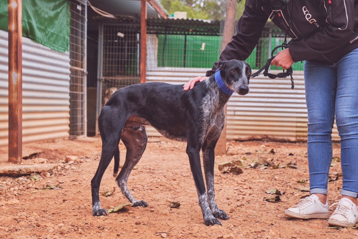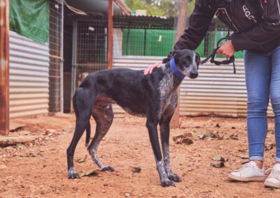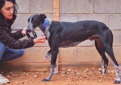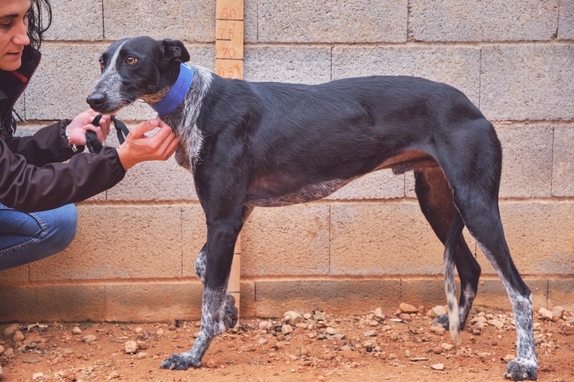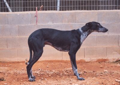Abandonné au refuge de Tobarra par un galguero tristement réputé pour sa violence, il est arrivé brisé, le regard vide, tremblant à chaque geste, se couchant au sol dès qu’une main s’approchait de lui… Comme s’il s’excusait d’exister.