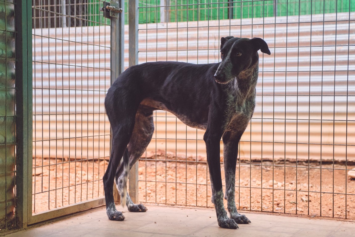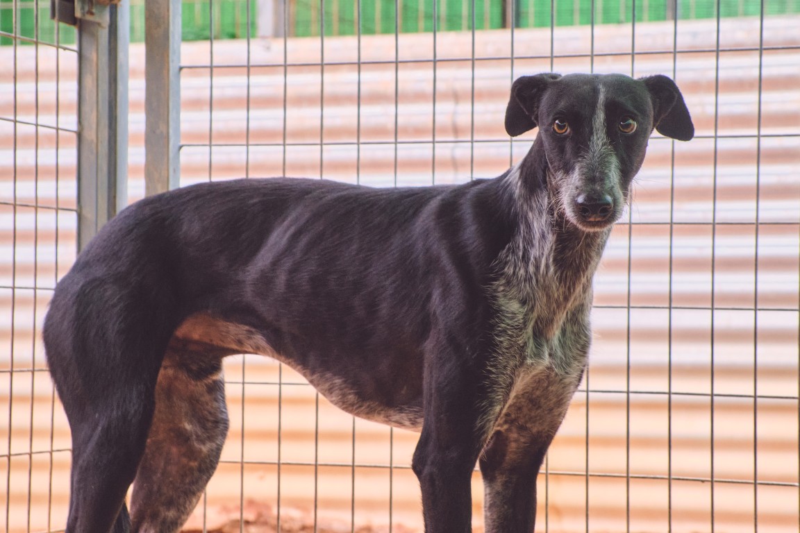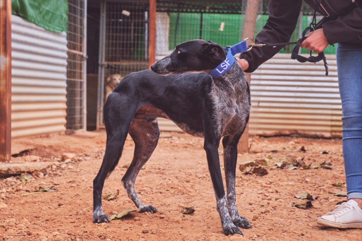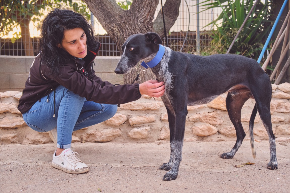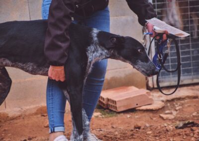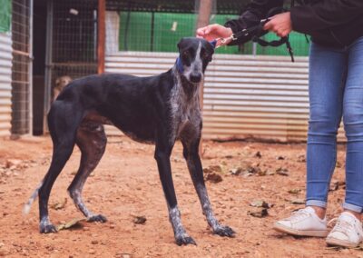 Abandonné au refuge de Tobarra par un galguero tristement réputé pour sa violence, il est arrivé brisé, le regard vide, tremblant à chaque geste, se couchant au sol dès qu’une main s’approchait de lui… Comme s’il s’excusait d’exister.