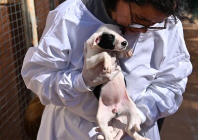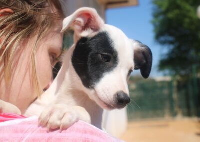 La petite Dana, une adorable podenca maneta, est arrivée au refuge partenaire de la FBM alors qu’elle était gestante.