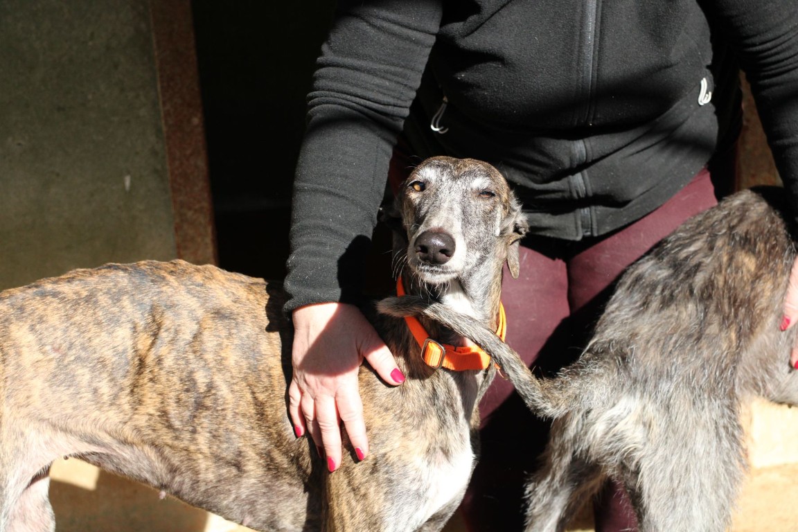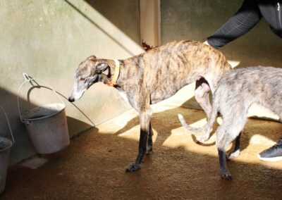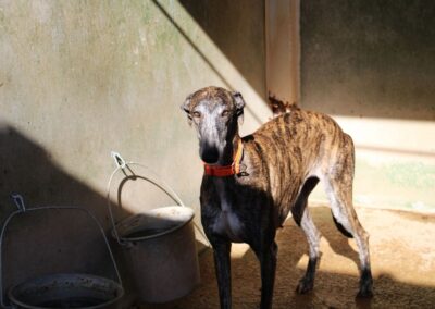 Estela est une galga douce et lumineuse, abandonnée au refuge de la FBM par un galguero en cette fin de saison de chasse 💔