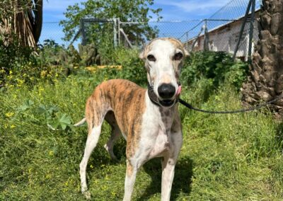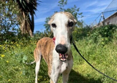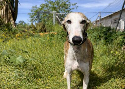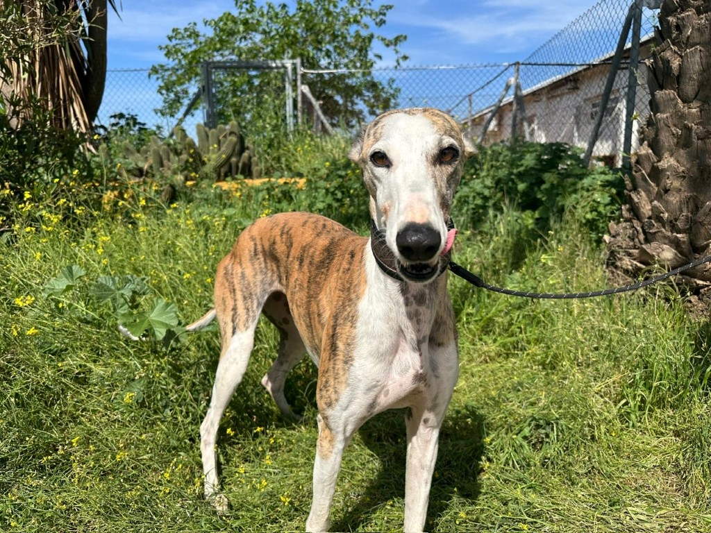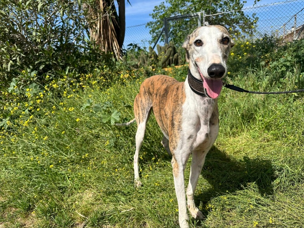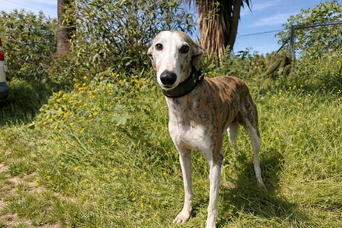 Elle a été abandonnée par un galguero au refuge de Carmona… 😢 Une épreuve difficile pour elle. Au début, elle a eu du mal à s’adapter à la vie du refuge… ce bruit, ce monde… 🐶💭 Mais jour après jour, elle s’est résignée… et attend désormais, en silence, qu’on vienne la sauver 🙏