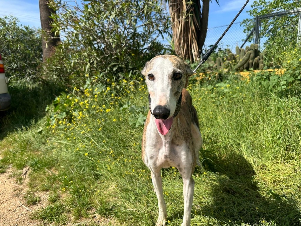 Avec ses magnifiques yeux comme maquillés de khôl 😍 et sa robe bringée et blanche 🤍🐕, Estrella est une galga absolument splendide… mais surtout une petite âme douce qui mérite enfin le bonheur 💔