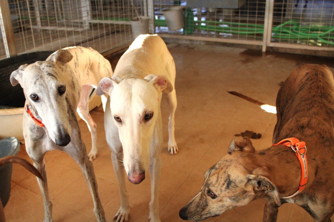 Fédé partage actuellement son box avec deux galgas arrivées avec lui 🐶