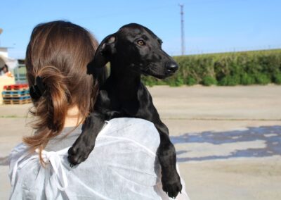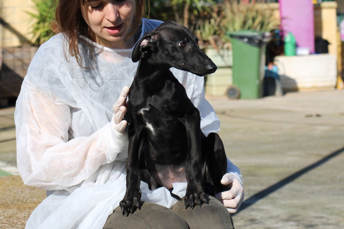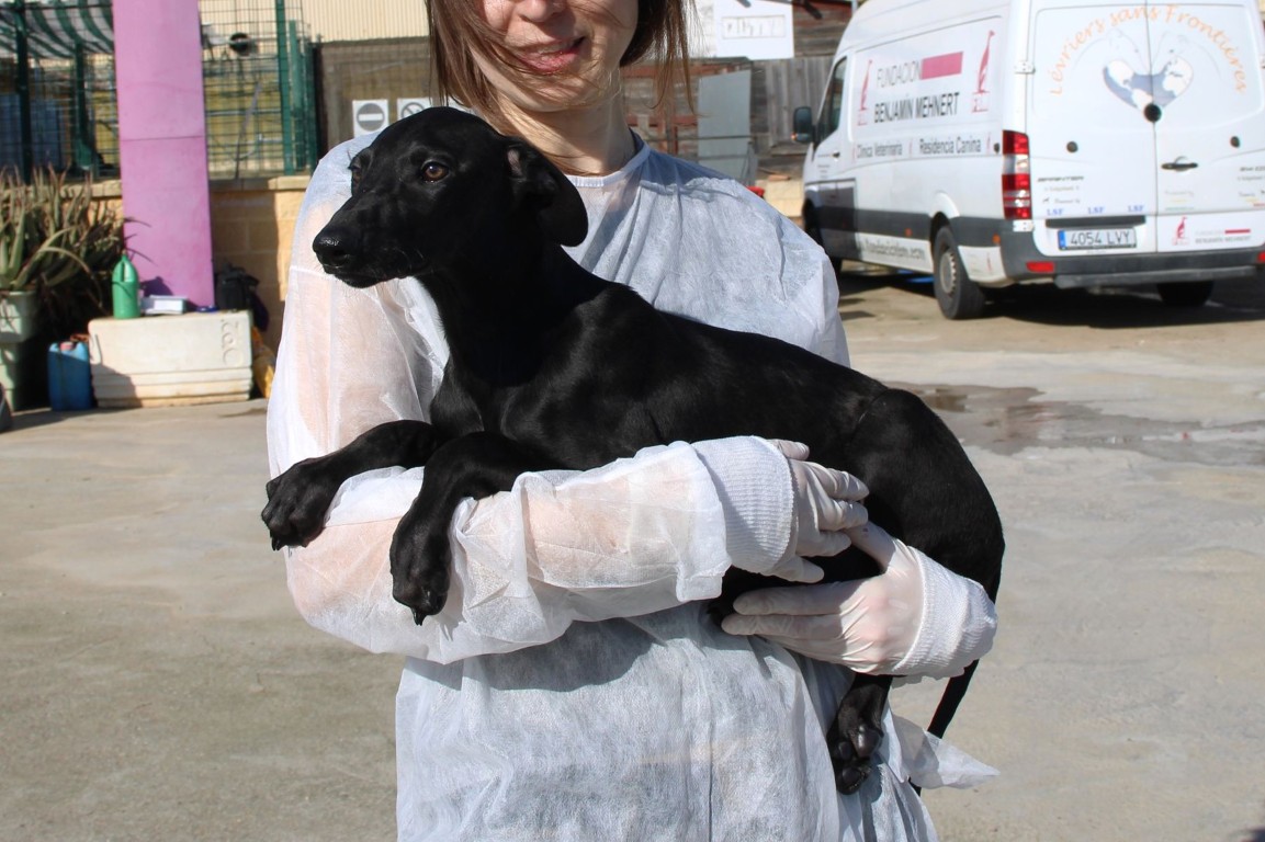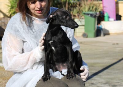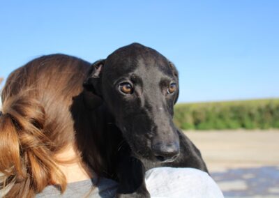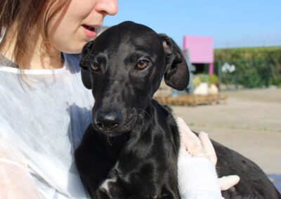 Ses chiots sont pris en charge par Lévriers sans Frontières et proposés à l’adoption.