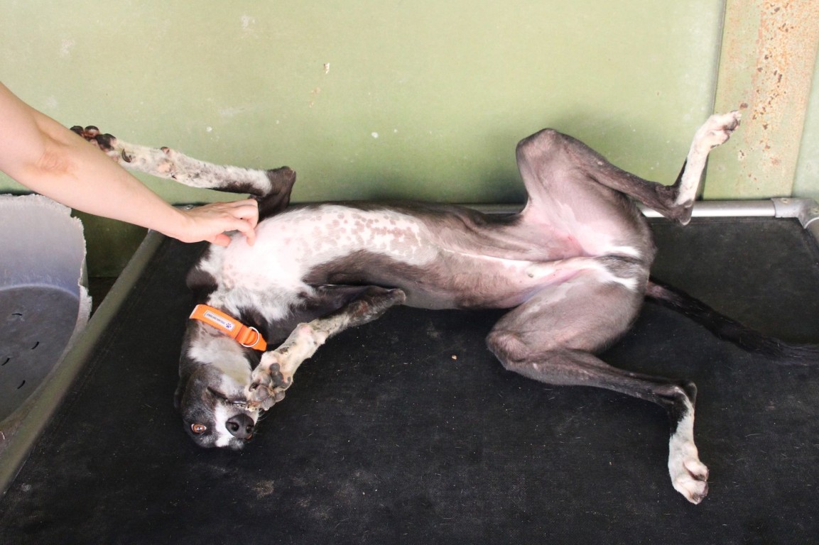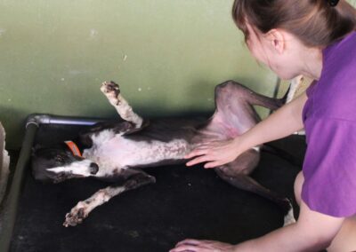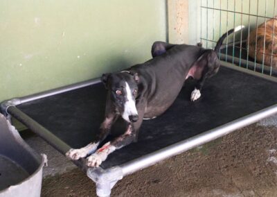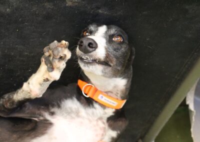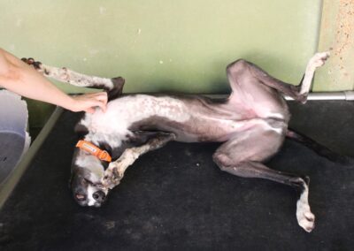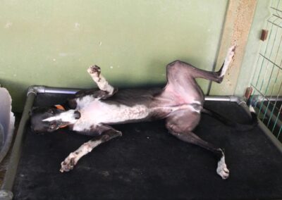 Et pourtant, jamais il n’a laissé la douleur éteindre sa joie de vivre 🌟. Ce galgo est un rayon de lumière dans la clinique : drôle 🤡, clownesque, toujours prêt à arracher un sourire 😍 à ceux qui l’entourent. Lors des soins quotidiens, il a cette manière unique de se rouler sur le dos 🙃, tendant ses pattes blessées comme pour dire : « Allez, je suis prêt ! ». Sa confiance et sa résilience forcent l’admiration de tous .