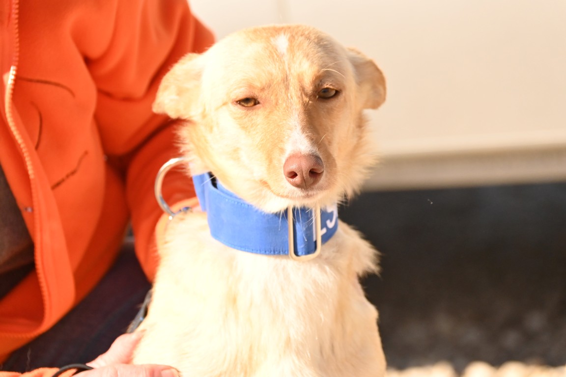 Voici Gaia, une adorable podenca couleur sable, toute jolie et pleine de douceur. Encore très jeune, elle est aussi très joueuse, affectueuse et toute mimi 💛