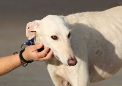 ✨ Gandalf, c’est le frère au cœur tendre de Soren … un magnifique galgo blanc qui vient tout juste d’avoir un an 🤍