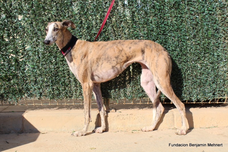 Gollesca est une galga timide qui a encore peur des étrangers et des situations nouvelles. Un congénère de sa taille et un jardin seront indispensables à son évolution. Si vous désirez l’adopter, n’hésitez pas à remplir notre formulaire en ligne.
