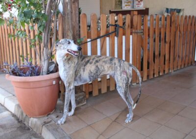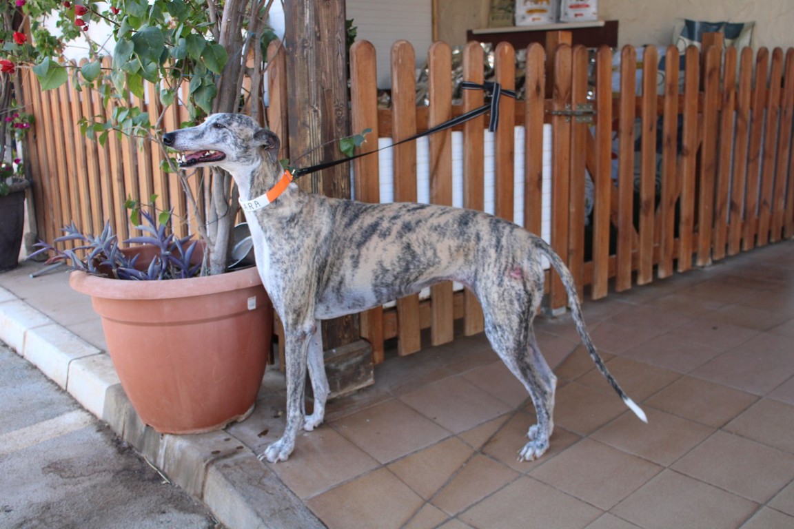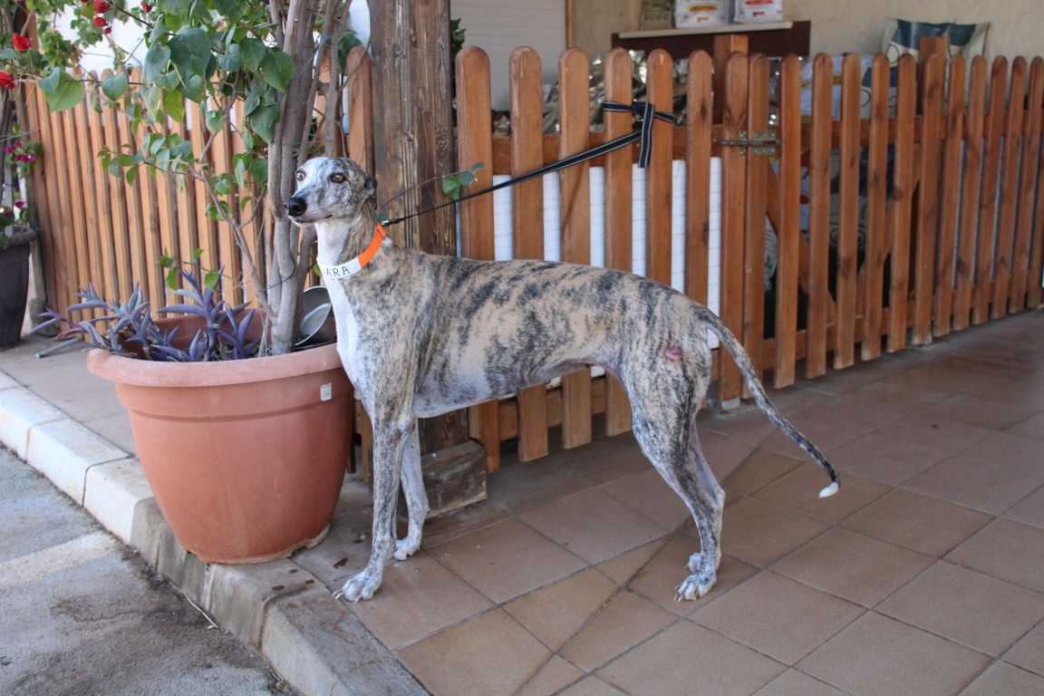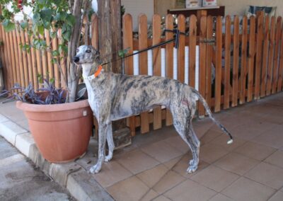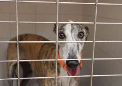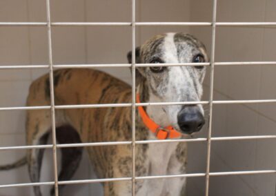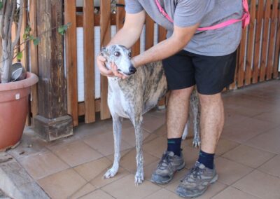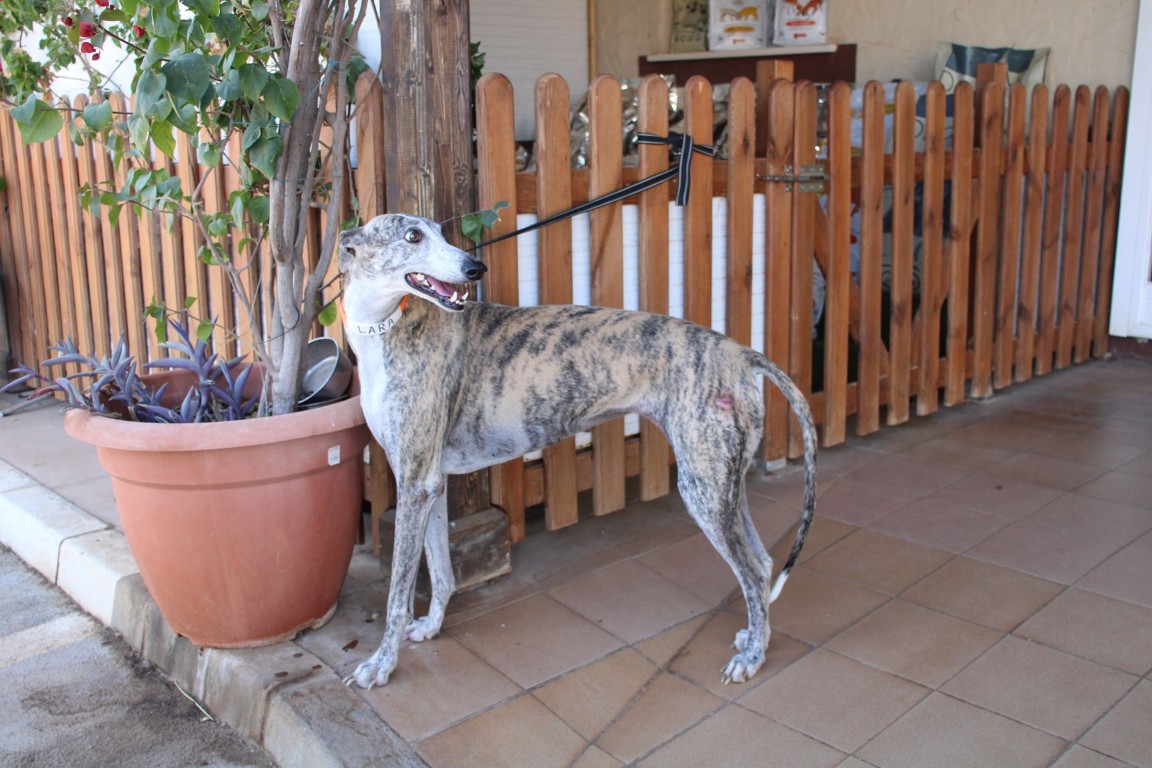 La douce Lara est arrivée récemment au refuge de la Fondación Benjamín Mehnert avec une fracture de la tête du fémur au postérieur droit. 😢 Son galguero a expliqué qu’elle s’était blessée en percutant un arbre en courant… et, comme souvent, il a préféré l’abandonner. À quoi bon la soigner, puisqu’elle ne pourrait plus courir à la chasse ?