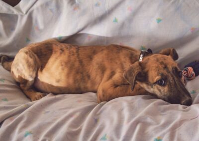 Eloise 💔 a connu la peur et la souffrance. Son galguero la maltraitait sans pitié, jusqu’au jour où il a appelé Carmen, la bénévole du refuge de Tobarra, pour lui demander de venir la chercher, sous peine de la tuer et de tuer ses chiots 😢