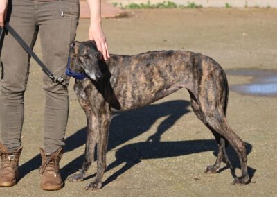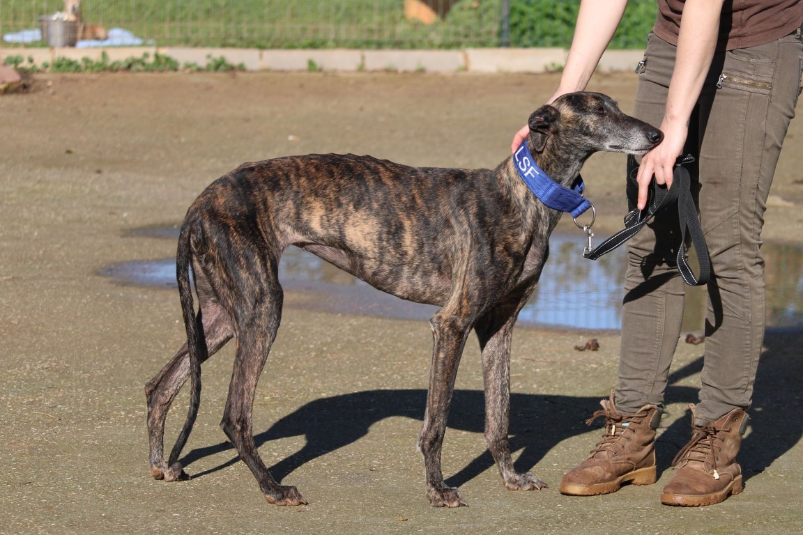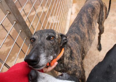 Lenna est une superbe galga bringée foncé, avec des yeux qui font tout son charme ✨👀. Peut-être qu’au premier regard, elle ne se distingue pas immédiatement parmi un groupe de galgos bringés… et pourtant 💫