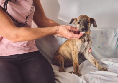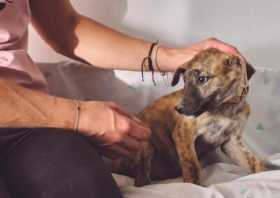 Eloise 💔 a connu la peur et la souffrance. Son galguero la maltraitait sans pitié, jusqu’au jour où il a appelé Carmen, la bénévole du refuge de Tobarra, pour lui demander de venir la chercher, sous peine de la tuer et de tuer ses chiots 😢