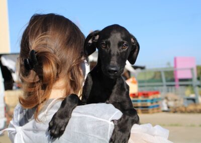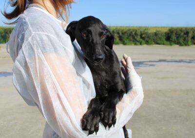 Ses chiots sont pris en charge par Lévriers sans Frontières et proposés à l’adoption.