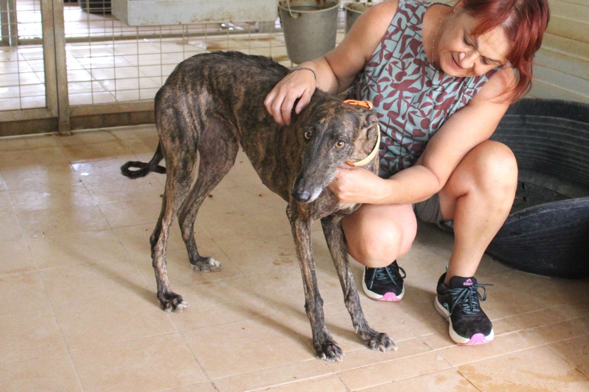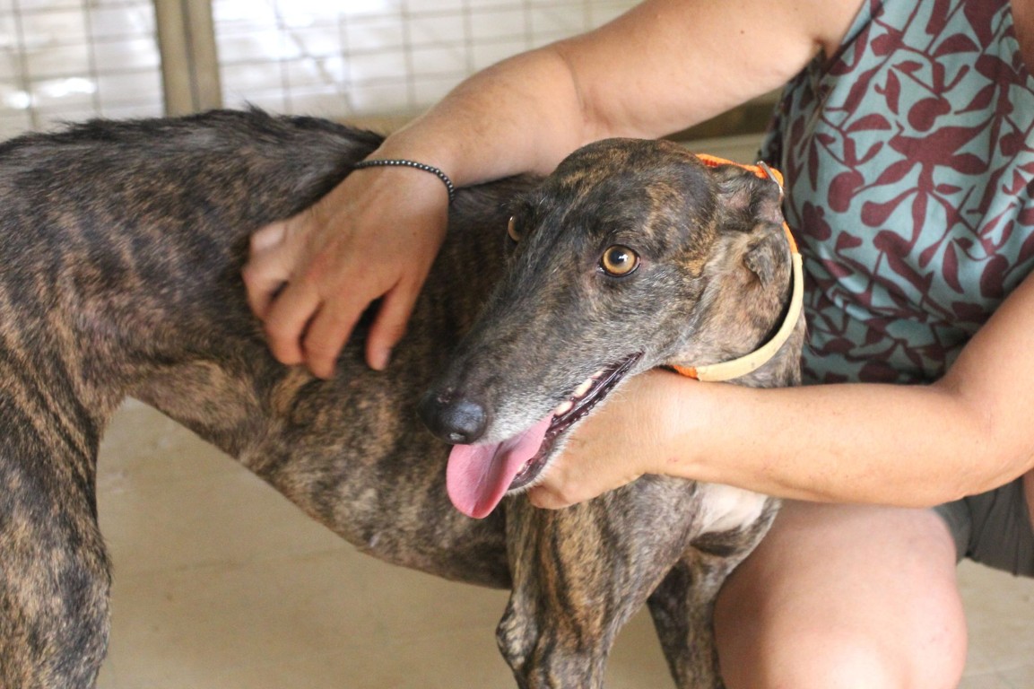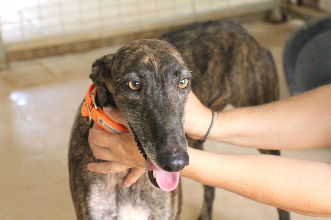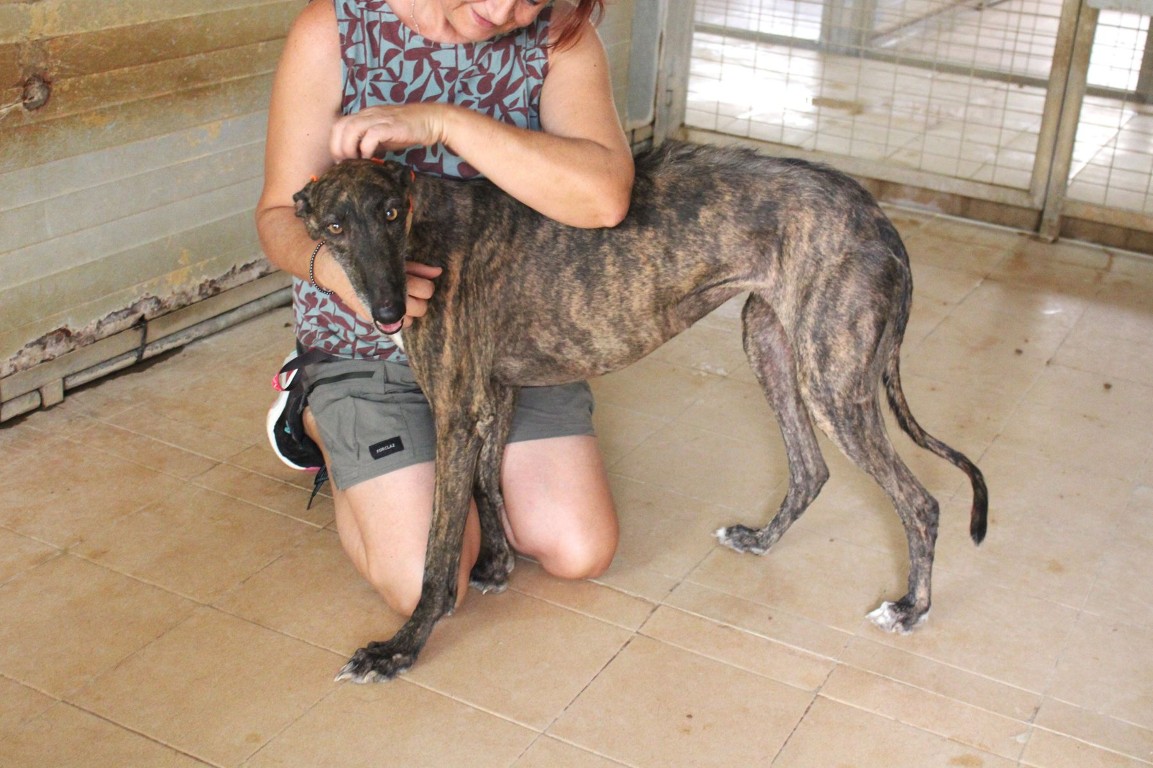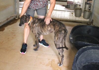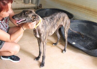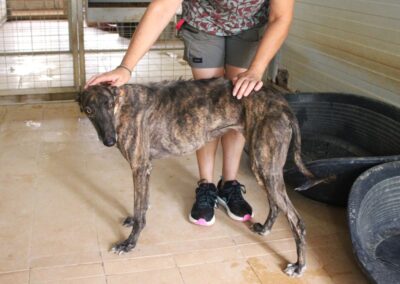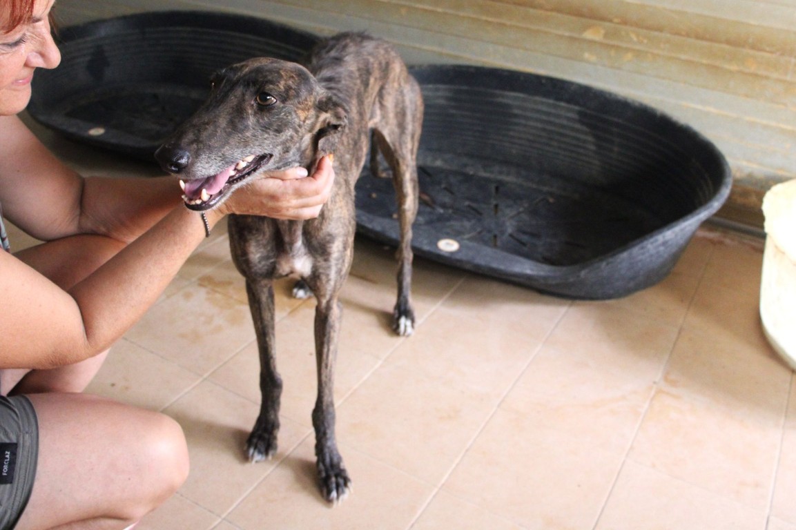 Voici une adorable galga de 4 ans, abandonnée comme tant d’autres par son galguero et actuellement au refuge de la FBM.